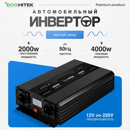 Инвертор автомобильный 12 220В, 4000 Вт (пост нагрузка до 2000 Вт) EcoHitek. Чистый синус. Подключение приборов, эл. инструмента.: сравнение цен, характеристики, фото, актуальное наличие и цены.