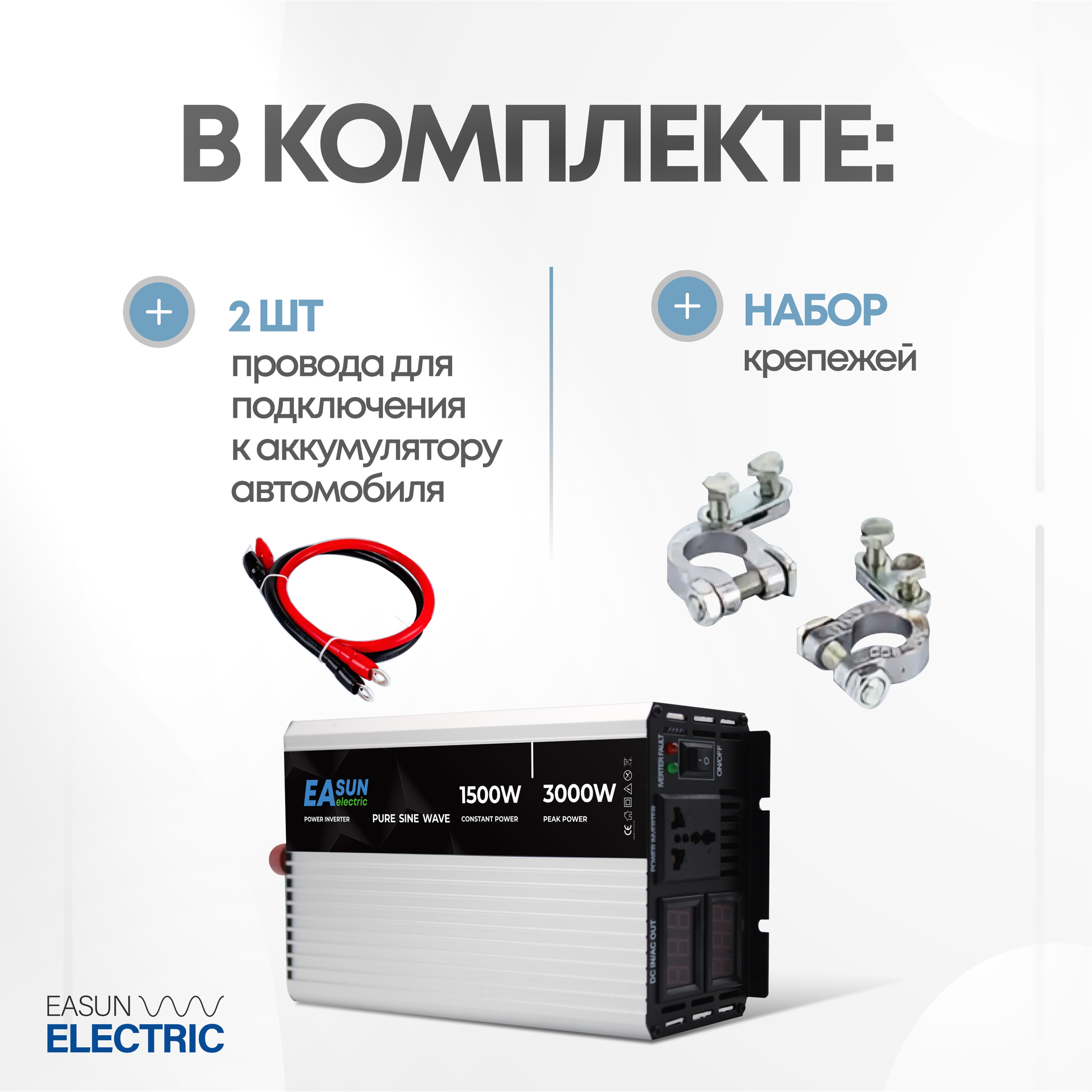 Преобразователь напряжения 12-220 В, мощностью 3000 Вт от EASun Electric позволяет получить напряжение 220 В от автомобильного аккумулятора. Это устройство становится незаменимым помощником в дальних поездках и выездах на природу благодаря наличию евророзетки и USB-выхода, что делает его универсальным источником питания для различных устройств.
