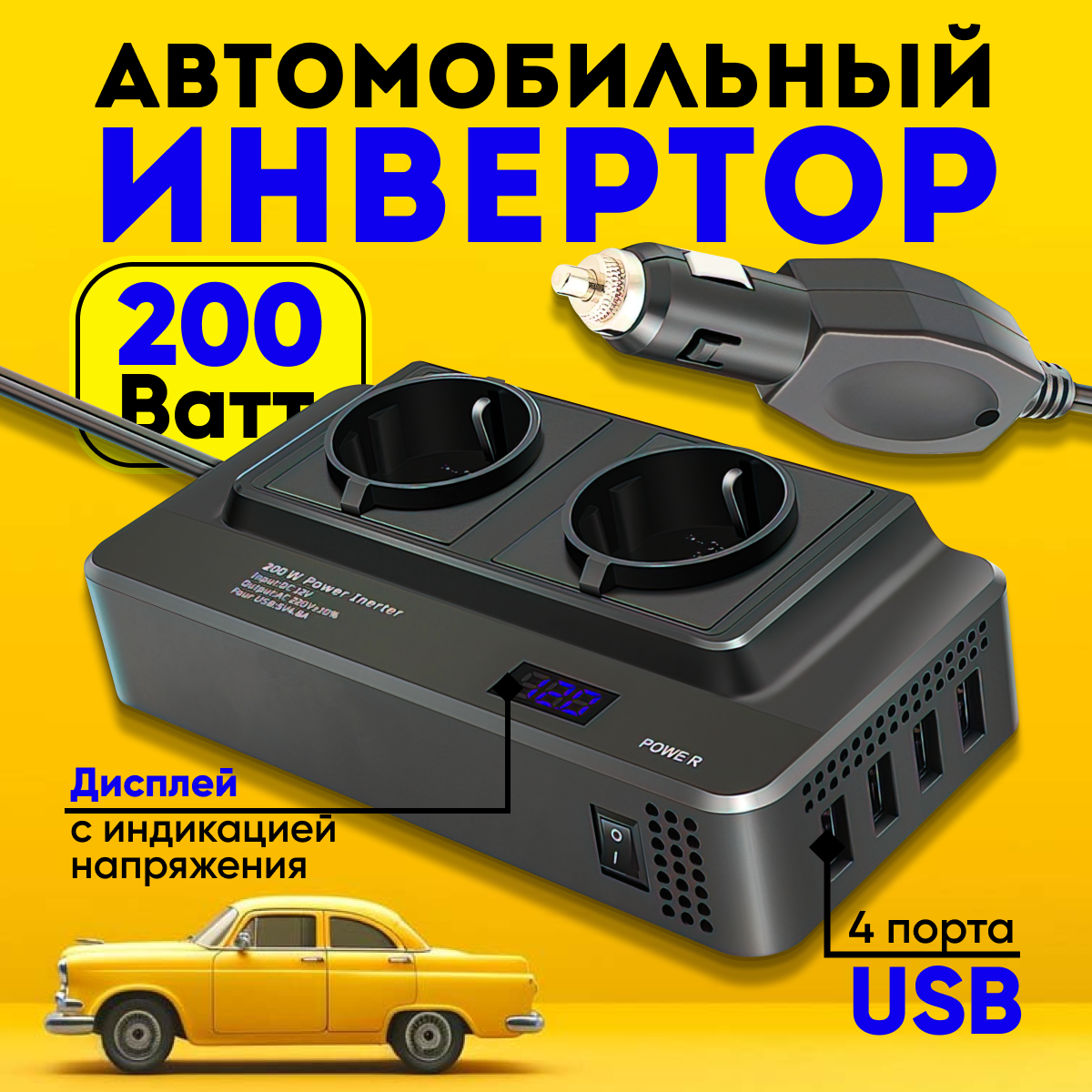 Инвертор автомобильный преобразователь напряжения 12-220V 4 USB цвет черный: сравнение цен, характеристики, фото, актуальное наличие и цены.