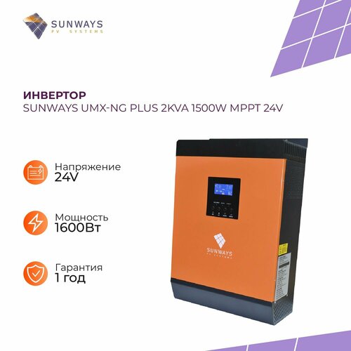 Инвертор для солнечных панелей Sunways UMX-NG Plus 2KVA 1500W MPPT 24V, преобразователь напряжения: сравнение цен, характеристики, фото, актуальное наличие и цены.