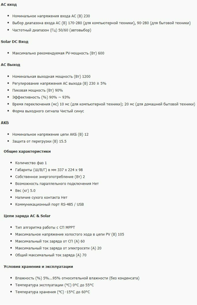 Инвертор гибридный SmartWatt MUST PV18-1212 VPM, 1.2кВт, однофазный: сравнение цен, характеристики, фото, актуальное наличие и цены.