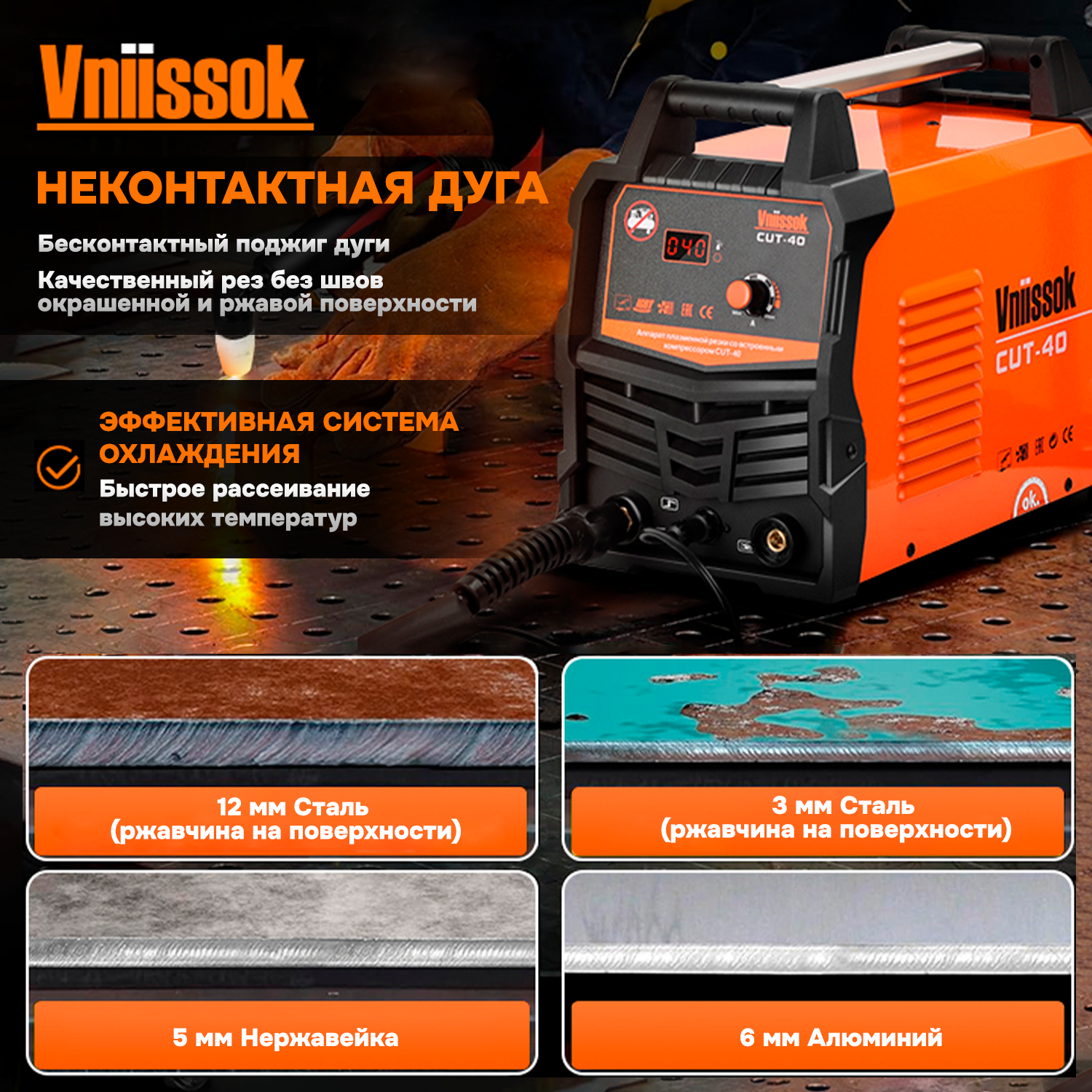 Инвертор Vniissok CUT-40, с встроенным компрессором, плазменная резка, 15мм, 40А: сравнение цен, характеристики, фото, актуальное наличие и цены.