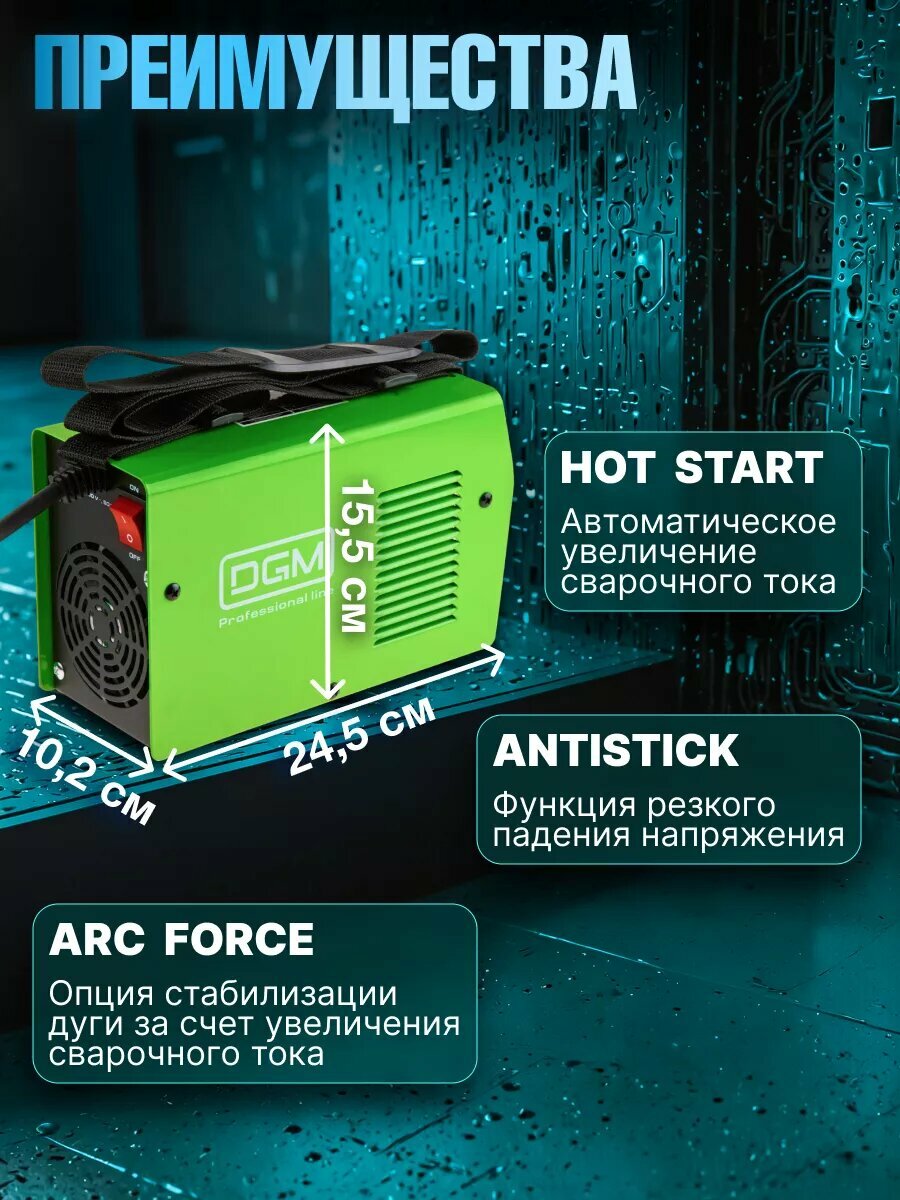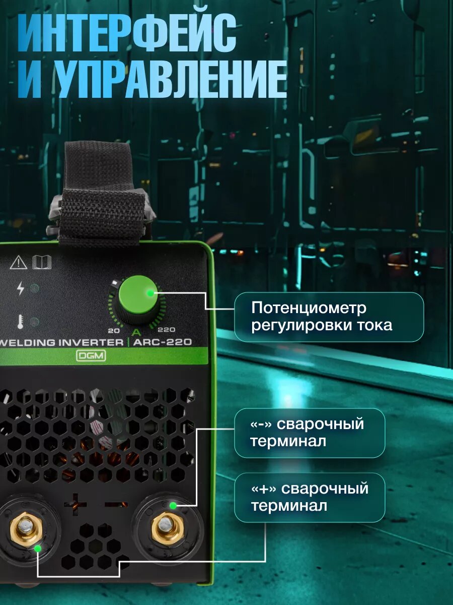 Инвертор сварочный аппарат DGM ARC-220 ручная дуговая сварка MMA (DG5821-6): сравнение цен, характеристики, фото, актуальное наличие и цены.