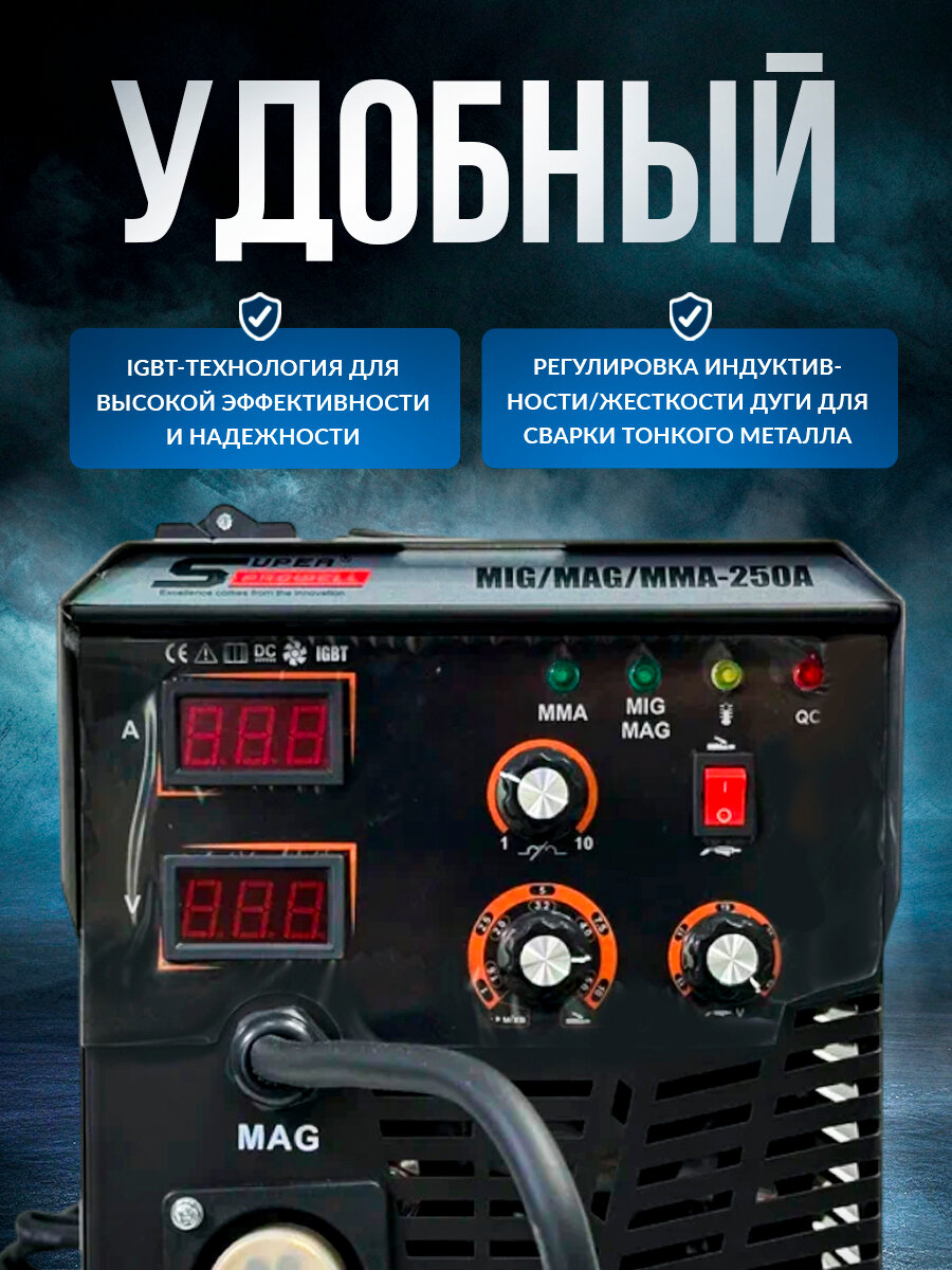 Инвертор сварочный SUPER PROWELL MIG/MAG/MMA lift 250А-5кг PRO с газом съемный рукав: сравнение цен, характеристики, фото, актуальное наличие и цены.