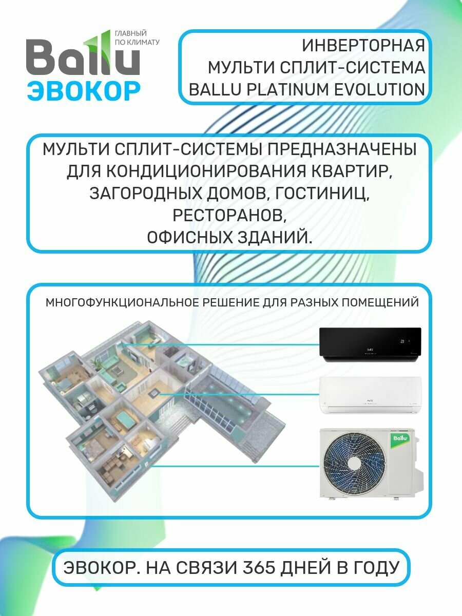 Инверторная мульти сплит-система BALLU на 2 комнаты (20 м2 + 25 м2) BA2OI-FM/out-14HN8/EU + BSUI-FM/in-07HN8/EU + BSUI-FM/in-09HN8/EU, комплект, белый