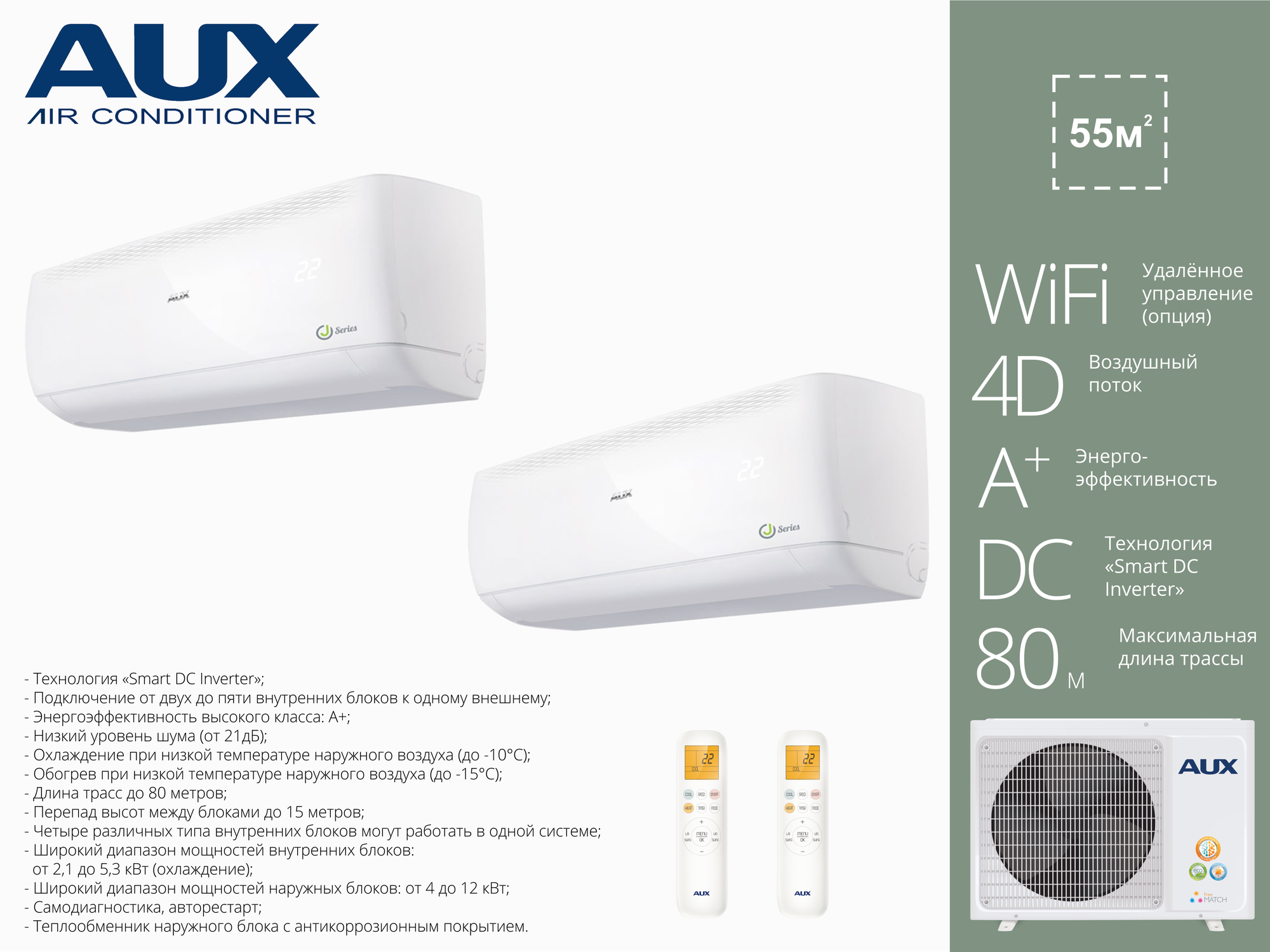 Инверторная мульти сплит система на 2 комнаты AUX AM2-H18/4DR2 + AMWM-H07/4R2(J) + AMWM-H12/4R2(J): сравнение цен, характеристики, фото, актуальное наличие и цены.