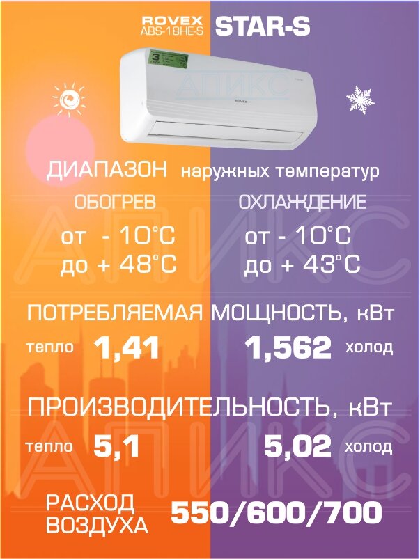 Инверторная сплит-система 18 ROVEX STAR ABS-18HE South, площадь помещения 54м²: сравнение цен, характеристики, фото, актуальное наличие и цены.