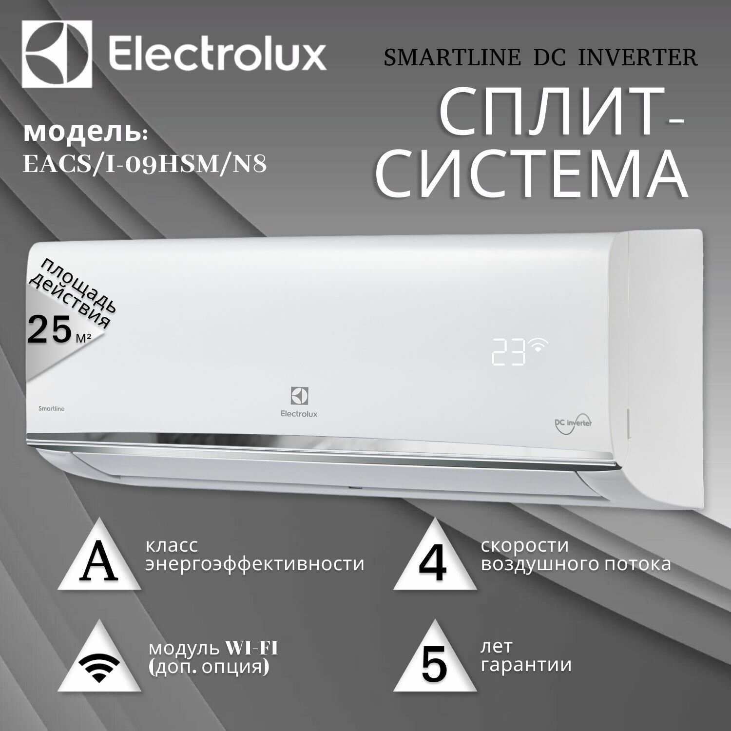 Сплит-система инверторного типа Electrolux Smartline DC EACS/I-09HSM/N8 комплект: сравнение цен, характеристики, фото, актуальное наличие и цены.