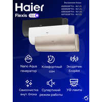 Кондиционеры серии Flexis сочетают в себе широкую функциональность и премиальный дизайн. Сплит-системы серии Flexis отлично подойдут для создания комфортного климата в квартире, частном доме или офисе летом, в межсезонье и даже зимой. Кондиционеры этой серии работают в режиме обогрева до −20С. Внутренние блоки представлены в белом, матовом черном и золотом (шампань) цветах. Отличительными особенностями этой серии являются функция стерилизации теплообменника Steri Clean 56C, убивающая до 99% бактерий и микробов, и новая LED УФ-лампа. Flexis совместим с новой IoT экосистемой Haier и может удаленно управляться по Wi-Fi через мобильное приложение. Функция Self Clean (внутренний блок)Инновационная технология очистки предполагает удаление микробов, бактерий, грибка и других вредных микроорганизмов, со временем накапливающихся на поверхности теплообменника с помощью процесса терморасширения. После активации функции очистки, кондиционер намараживает небольшой слой инея на теплообменнике. Затем, при оттайке жидкость выталкивается вместе с грязью, очищая теплообменник. Данная функция предусмотрена как в наружном, так и во внутреннем блоке. Функция «Self Clean» (наружный блок)Автоматическая очистка теплообменника наружного блока. После активации функции кондиционер намораживает лёд на теплообменнике. После этого температура теплообменника увеличивается. Лёд тает и при расширении выталкивает грязь из теплообменника«Экодатчик»При помощи датчика присутствия регистрируется наличие людей в помещении и их передвижение, в соответствии с чем работа кондиционера автоматически адаптируется под создание наиболее комфортных условий для человека. Датчик света системы Ecopilot контролирует уменьшение освещенности в помещении и в зависимости от этого система корректирует уставку температуры для обеспечения энергосбережения. Работа на обогрев до -20СЭффективная работа на обогрев до –20 °С предоставляет возможность использовать систему кондиционирования в качестве дополнительного источника тепла в межсезонье и в зимний период времени. Ag+ покрытие корпусаВо внутреннем блоке все пластиковые элементы изготавливаются с применением нано-ионов серебра, которые предотвращают рост бактерий, а так же образование плесени и грибка. Угольный фильтрУгольный фильтр выступает в роли абсорбента, впитывая запахи, дым и другие летучие соединения, включая вредные газы. Проходя через угольную фильтр-кассету, ненужные примеси оседают на ней. STERI-CLEAN 56°CПосле проведения процедуры самоочистки Self Clean автоматически стартует процесс стерилизации. Теплообменник принудительно осушается, и с помощью интеллектуального контроля температуры и регулировки частоты вращения вентилятора, температура на теплообменнике достигает 56°С и сохраняется в течение 30 минут после активации. Благодаря применению данной технологии вся внутренняя часть внутреннего блока сплит-системы стерилизуется, а находящиеся внутри вирусы и микроорганизмы погибают. Модуль O2 Fresh притока свежего воздуха (опция)Обеспечивая вентиляцию, модуль O2 Fresh гарантирует приток свежего воздуха в помещение. Объем подачи составляет 30 м3/час. Блок подачи свежего воздуха монтируется снаружи здания. Подача воздуха осуществляется по воздуховоду. УФ-лампа нового поколенияМодуль UVC состоит из двух светодиодных УФ-ламп, генерирующих У