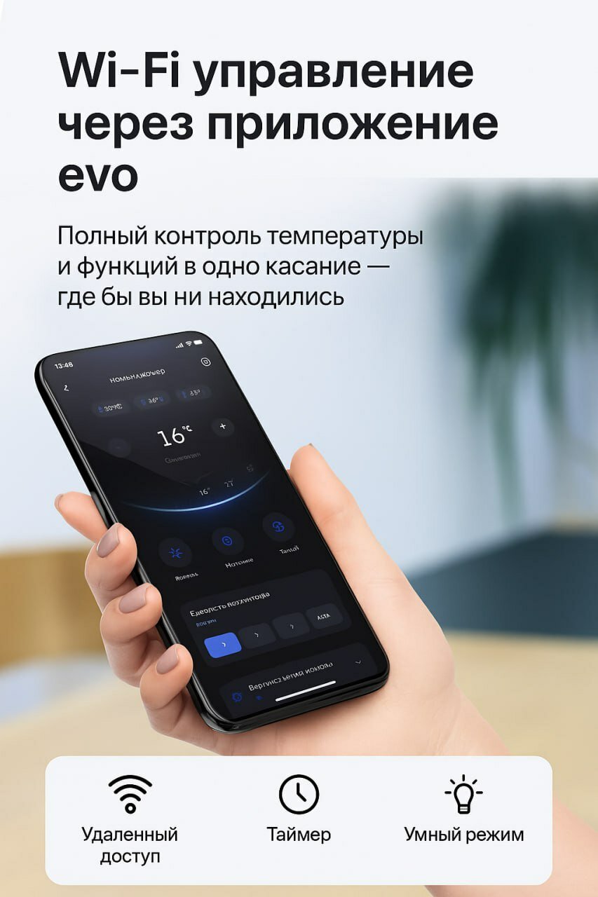 | Дополнительная информация | Wi-Fi управление через приложение evo |