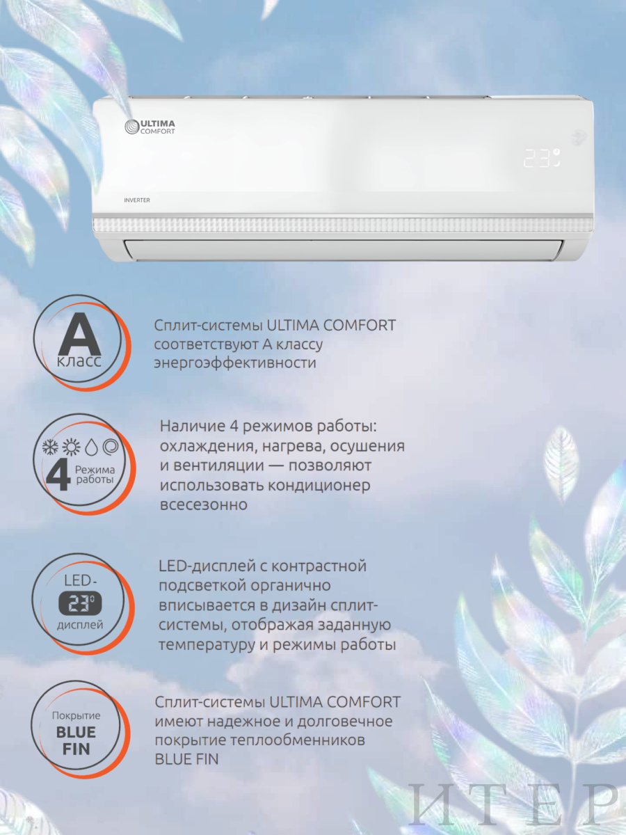 Инверторная сплит-система ULTIMA COMFORT серии ECLIPSE Inverter ECS-I24PN (комплект) 68 м²: сравнение цен, характеристики, фото, актуальное наличие и цены.