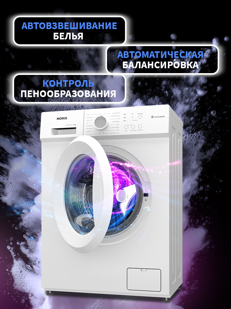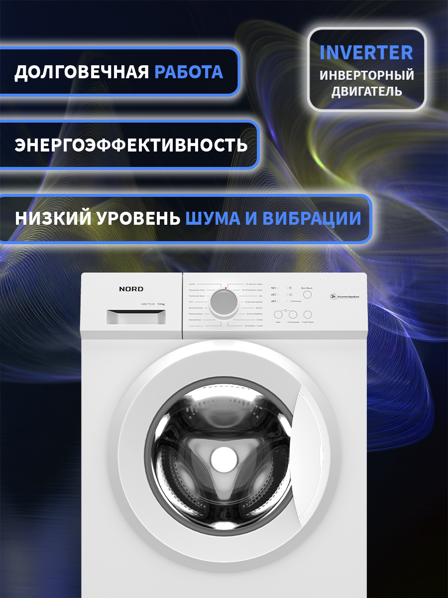 Инверторная стиральная машина NORD i-WS 712 W, 7 кг загрузка, стирка с паром, 16 программ, цвет белый: сравнение цен, характеристики, фото, актуальное наличие и цены.