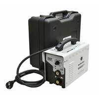 кабель питания, кабель массы, держатель электрода с кабелем, пластиковый кейс, ручка и ремень для переноски