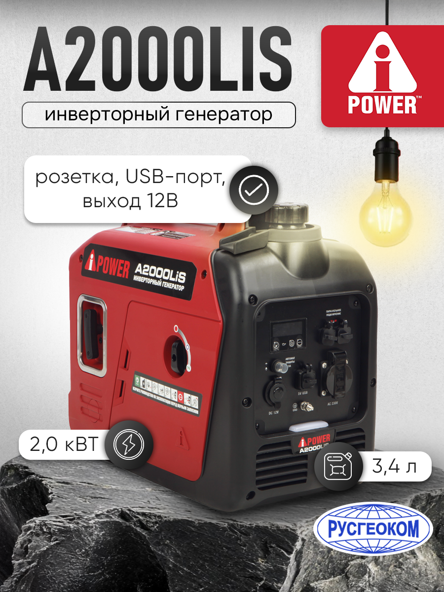 Инверторный бензиновый генератор A-iPower A2000LiS - легкий и компактный. Идеальное решение для кемпинга, коротких выездов на природу. Такой генератор обеспечит электричеством портативную технику, телефоны, ноутбуки и небольшие колонки, которые чувствительны к постоянному току. Низкий уровень шума не будет мешать вашему отдыху.