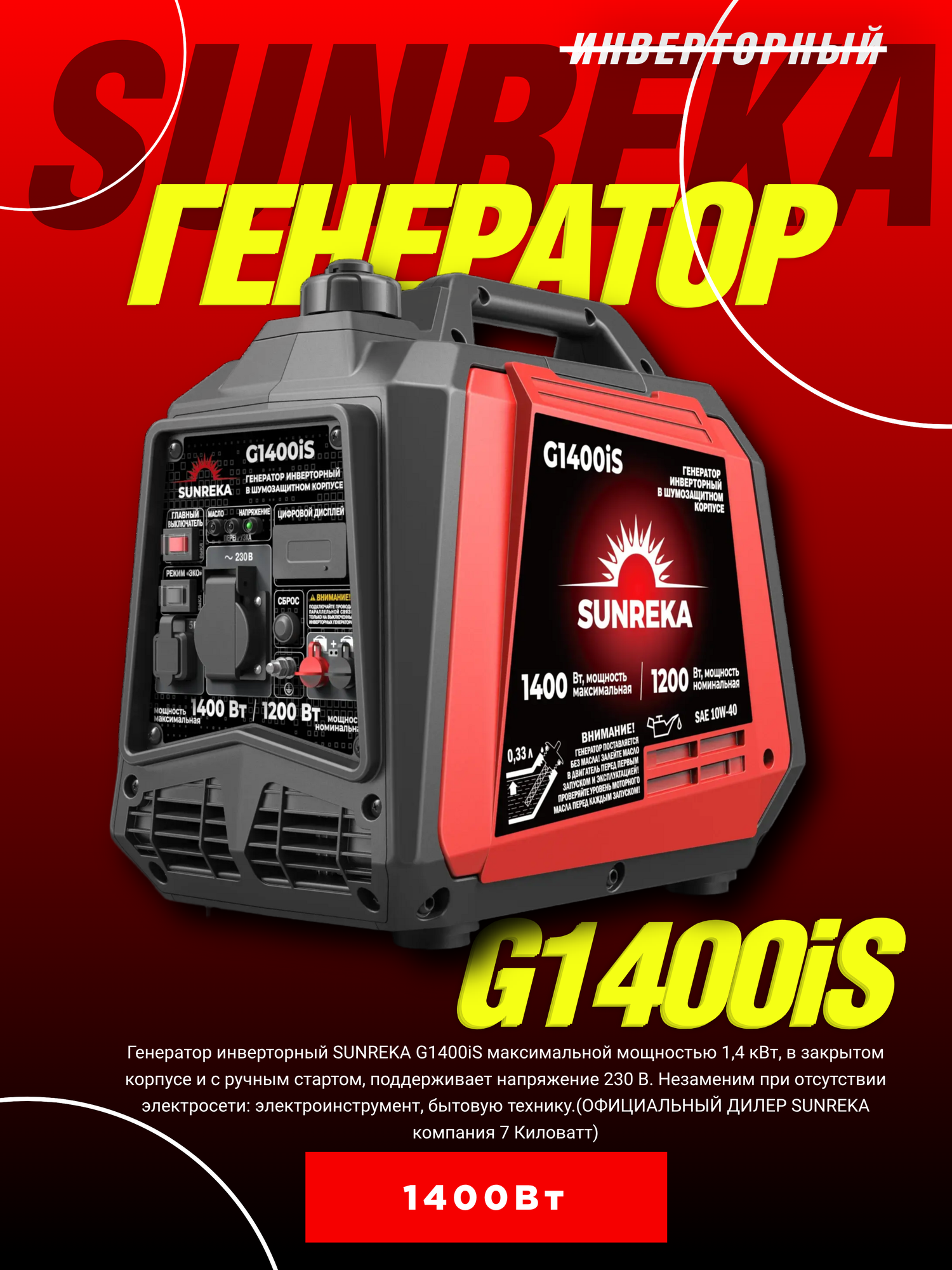 Купить Инверторный бензогенератор SUNREKA G1400iS, шумоизоляция, ручной запуск, 1.4кВт с доставкой по всей России. Инверторный бензогенератор SUNREKA G1400iS, шумоизоляция, ручной запуск, 1.4кВт: сравнение цен, характеристики, фото, актуальное наличие и цены.