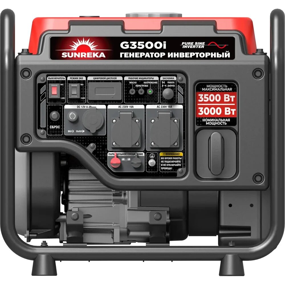 Инверторный генератор SUNREKA G3500i представляет собой надежное и эффективное решение для обеспечения электроэнергией в различных условиях. Этот продукт весит всего 24 килограмма, что делает его достаточно легким и удобным для транспортировки. Мощность достигает 3,5 кВт, что позволяет использовать его для питания различных электрических приборов и оборудования. Двигатель, работающий на бензине, имеет объем 5,2 л. с. и развивает обороты до 4850 в минуту, обеспечивая стабильную и качественную работу генератора. Устройство оснащено индикатором уровня топлива и счетчиком моточасов, что позволяет контролировать его работу и планировать заправку. Наличие датчика масла гарантирует защиту двигателя от перегрева и выхода из строя, что повышает его надежность. Генератор также предлагает выходы на 12 и 16 ампер, обеспечивая возможность подключения различных приборов. Уровень шума в 65 дБ делает его достаточно тихим для использования в жилых районах или при проведении мероприятий на открытом воздухе. Система контроля напряжения инверторного типа обеспечивает стабильное напряжение при работе, что особенно важно для чувствительной электроники. Мощность при 220 В составляет 3 кВт, что позволяет эффективно использовать генератор в бытовых и профессиональных целях. Открытый тип кожуха обеспечивает хорош