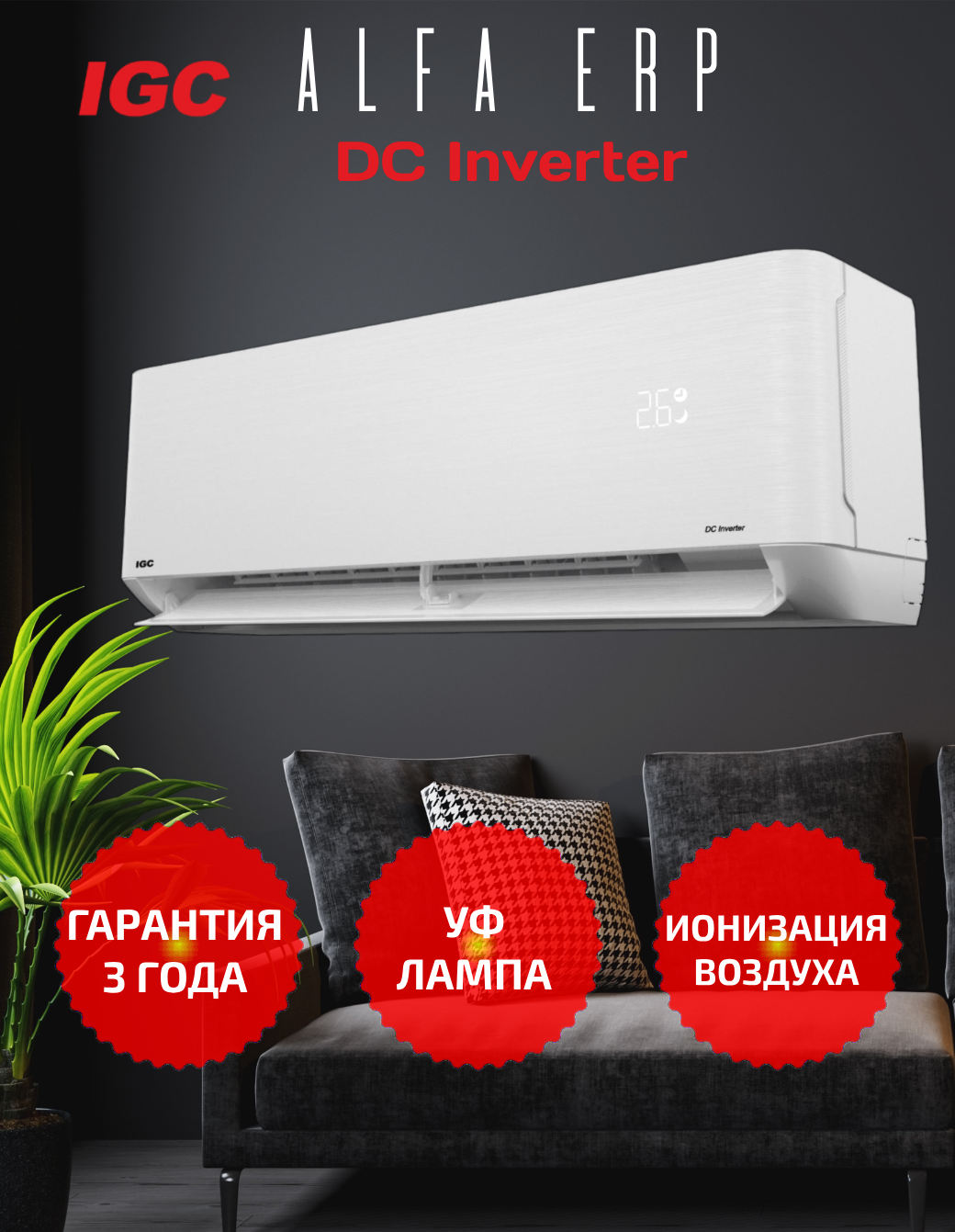 Купить Инверторный кондиционер IGC серии T ALFA ERP DC Inverter сплит-система RAS-V12AT обеззараживатель УФ лампой с доставкой по всей России.