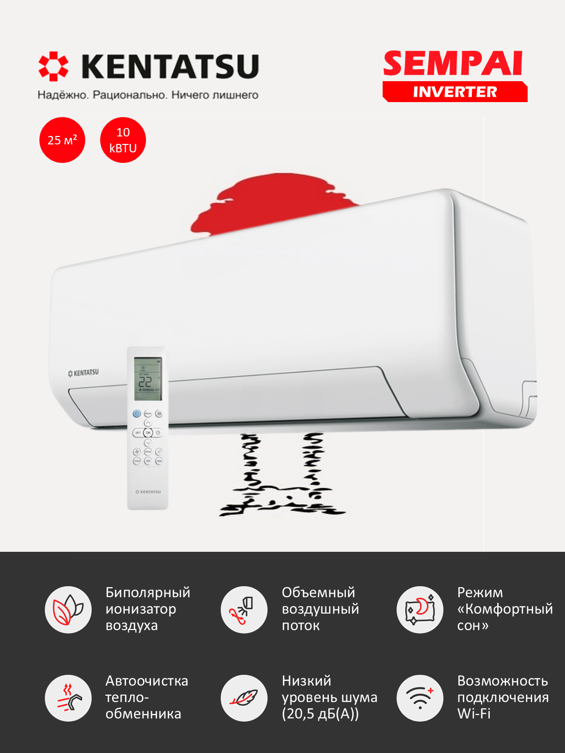 Купить Инверторный кондиционер Kentatsu Sempai KSGPA26HZRN1/KSRPA26HZRN1 с доставкой по всей России.