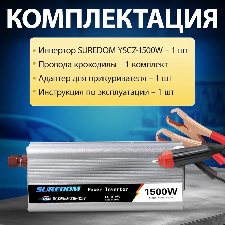 Автомобильный инвертор SUREDOM YSCZ-1500W, 12В-220В, 1500 Вт: сравнение цен, характеристики, фото, актуальное наличие и цены.
