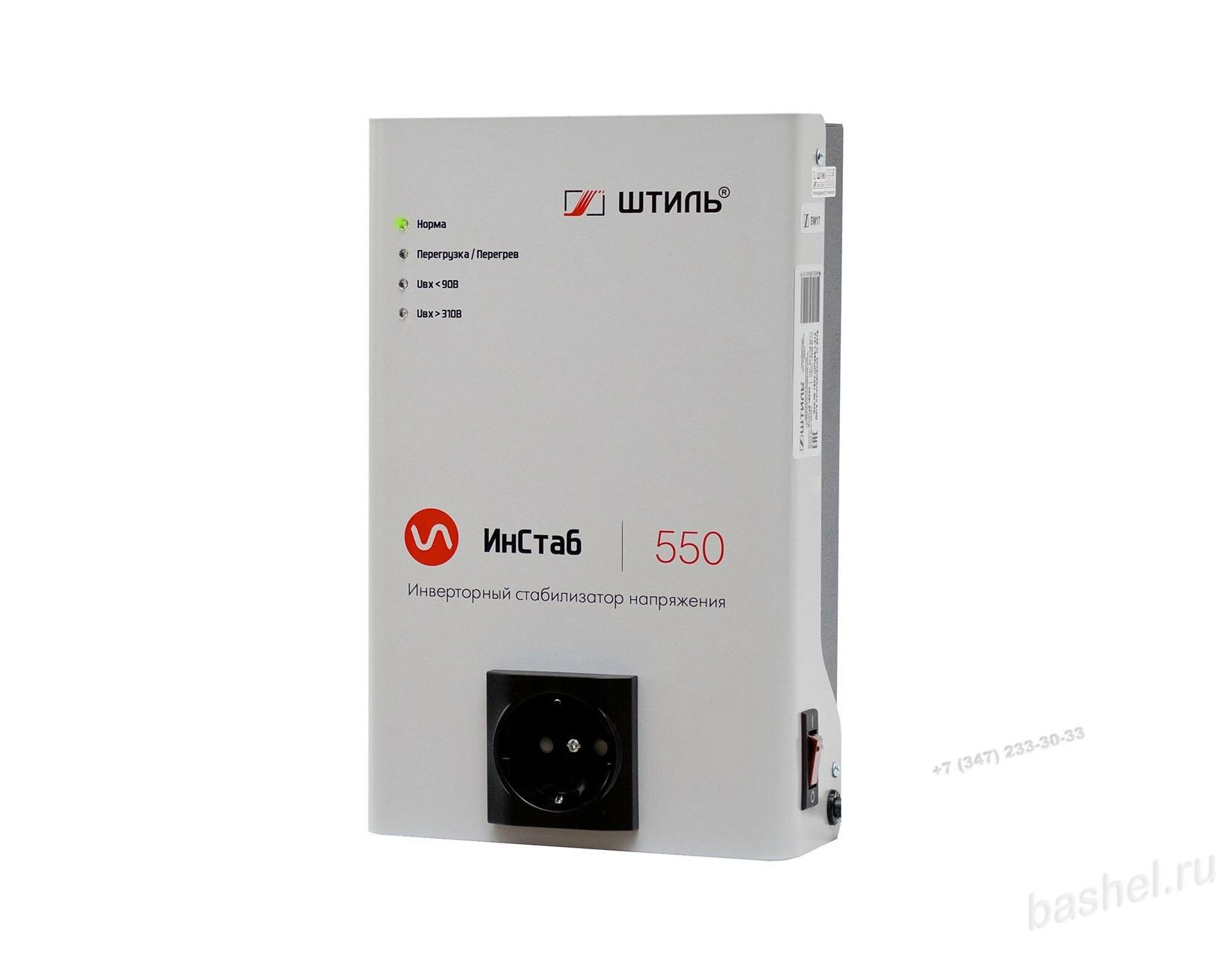 Стабилизатор напряжения Штиль ИнСтаб IS550 - это однофазный стабилизатор инверторного типа, предназначенный для защиты от нестабильного напряжения различных устройств, включая электронику газовых котлов, насосное оборудование, компьютерное и офисное оборудование, телевизоры, аудио- и видеоаппаратуру, осветительные приборы и другую бытовую и офисную нагрузку.