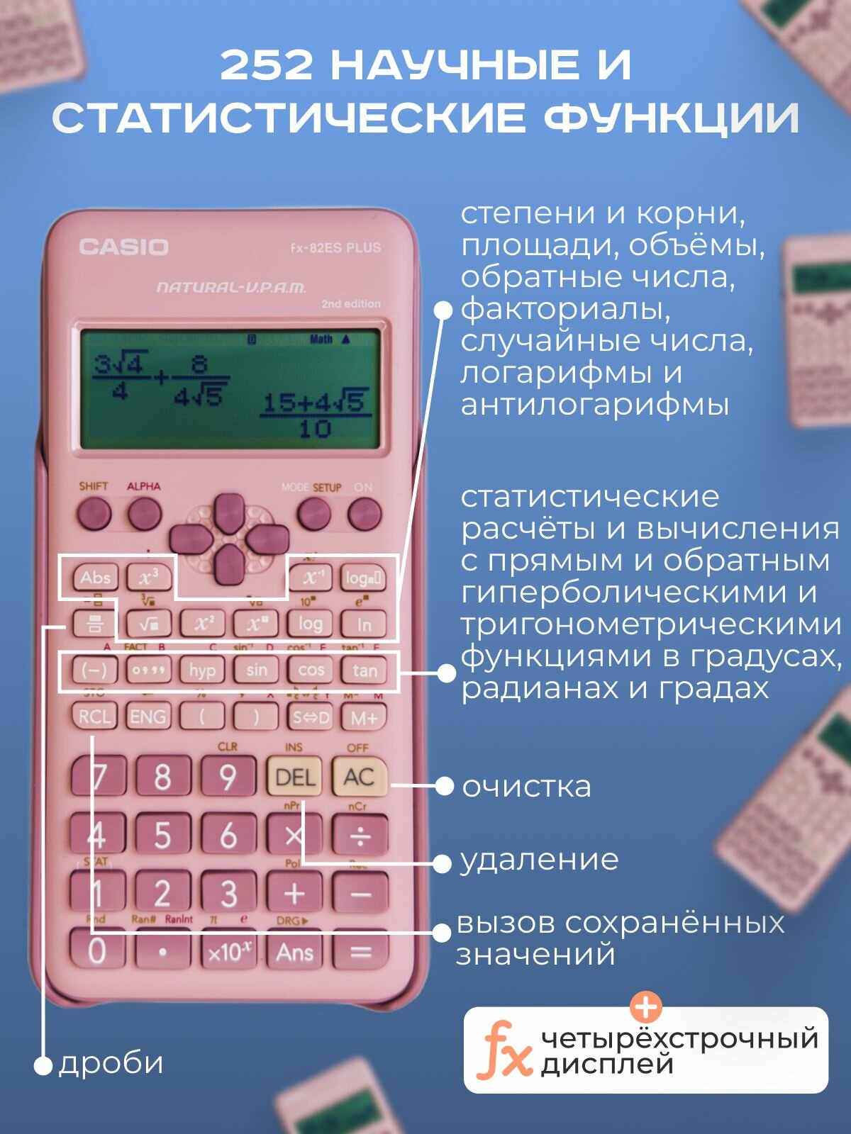 Инженерный калькулятор Casio FX-82ESPLUS-2, 252 функции, научный, Розовый GZTC: сравнение цен, характеристики, фото, актуальное наличие и цены.