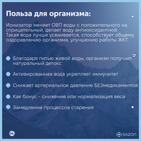 Функции портативного активатора воды: благодаря питью здоровой воды организм получает натуральный детокс, как бонус - снижение или нормализация веса, активированная вода укрепляет иммунитет, целебная влага без медикаментов снижает артериальное давление.