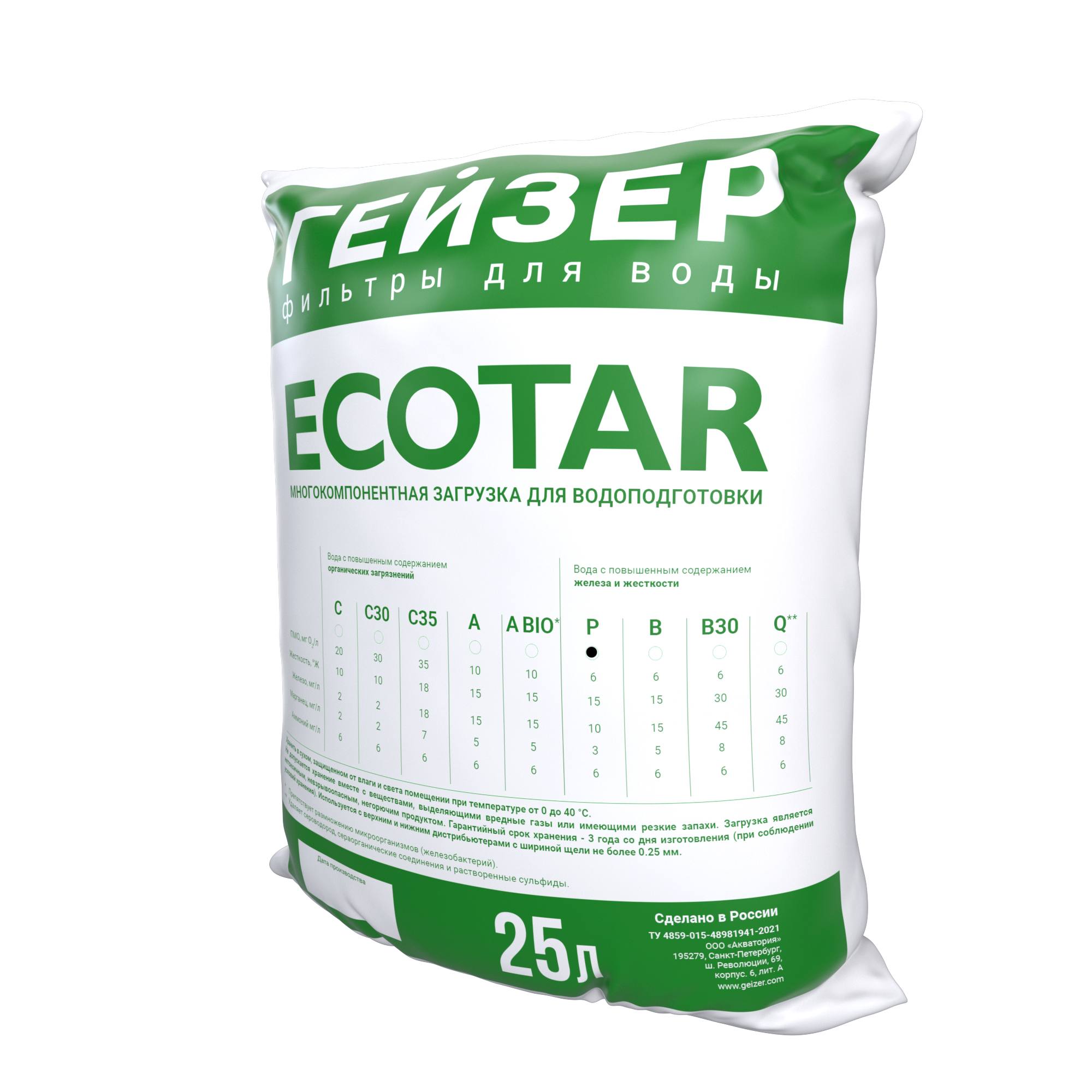 Универсальная фильтрующая загрузка Гейзер Экотар P в мешке 25 л предназначена для комплексной очистки воды из артезианских скважин с умеренным содержанием растворенного железа, солей жесткости и марганца при незначительном уровне органики. Она подходит для колонн любых производителей и работает в широком диапазоне pH (0-14). Ионообменная смола Экотар P – оптимальное решение для воды, которая первоначально прозрачна, но при отстаивании желтеет и образует бурый осадок железа, а при кипячении оставляет накипь.