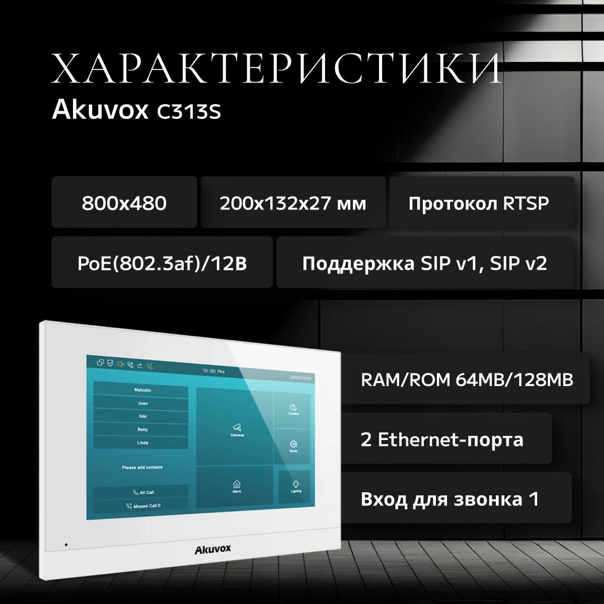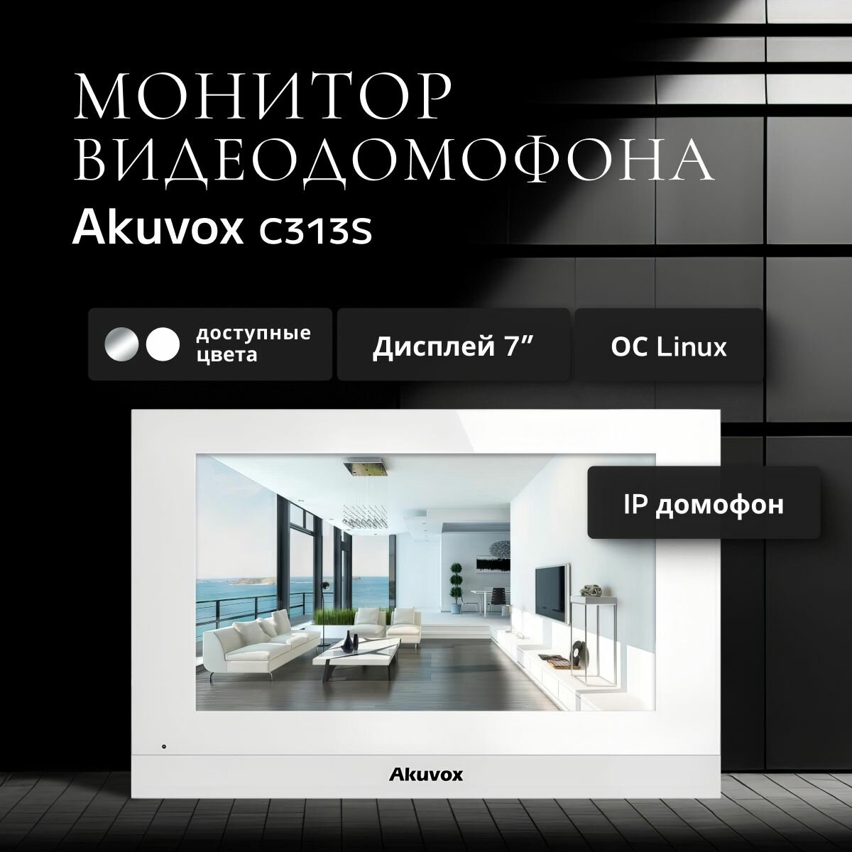 Монитор домофона Akuvox C313S (Белый), сенсорный экран, 7″: сравнение цен, характеристики, фото, актуальное наличие и цены.