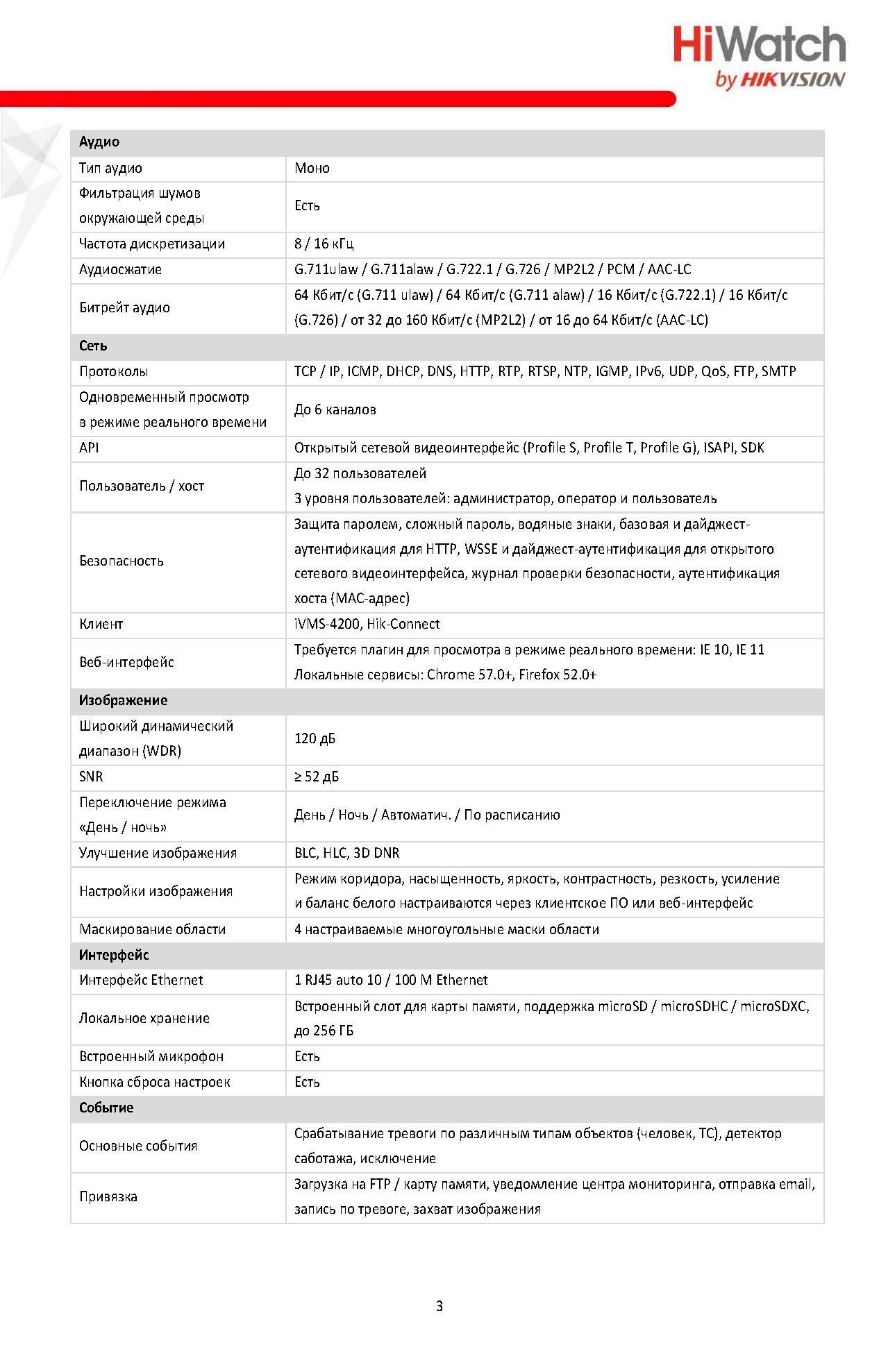 WDR 120дБ, 3D DNR, BLC, ROI