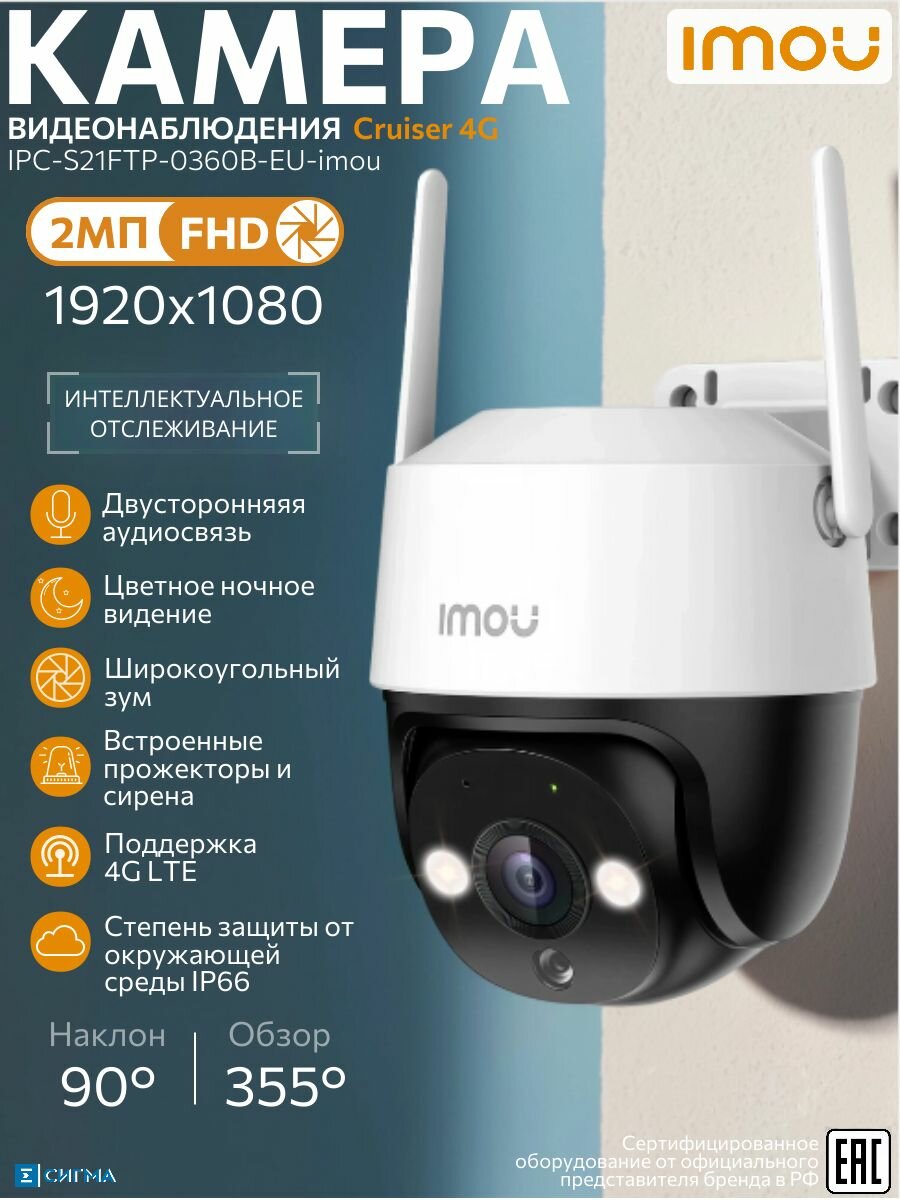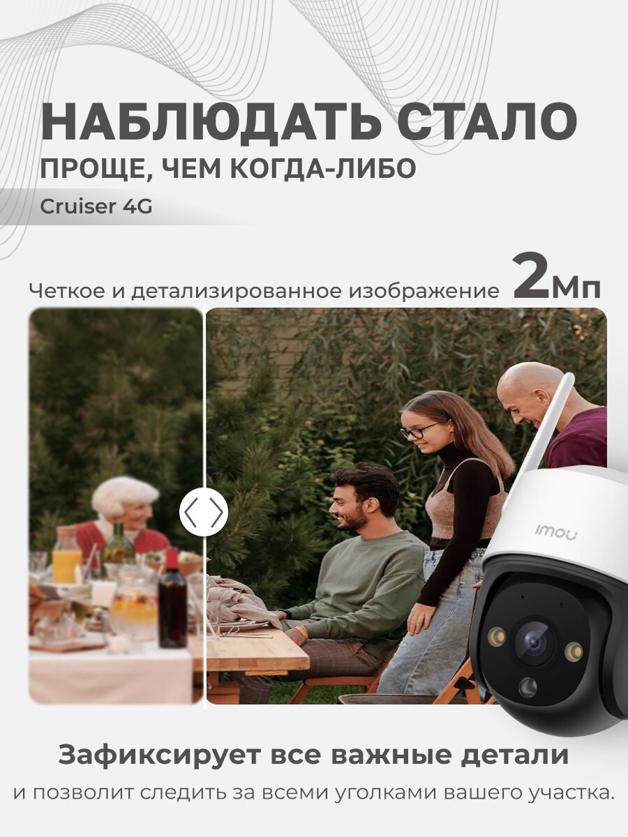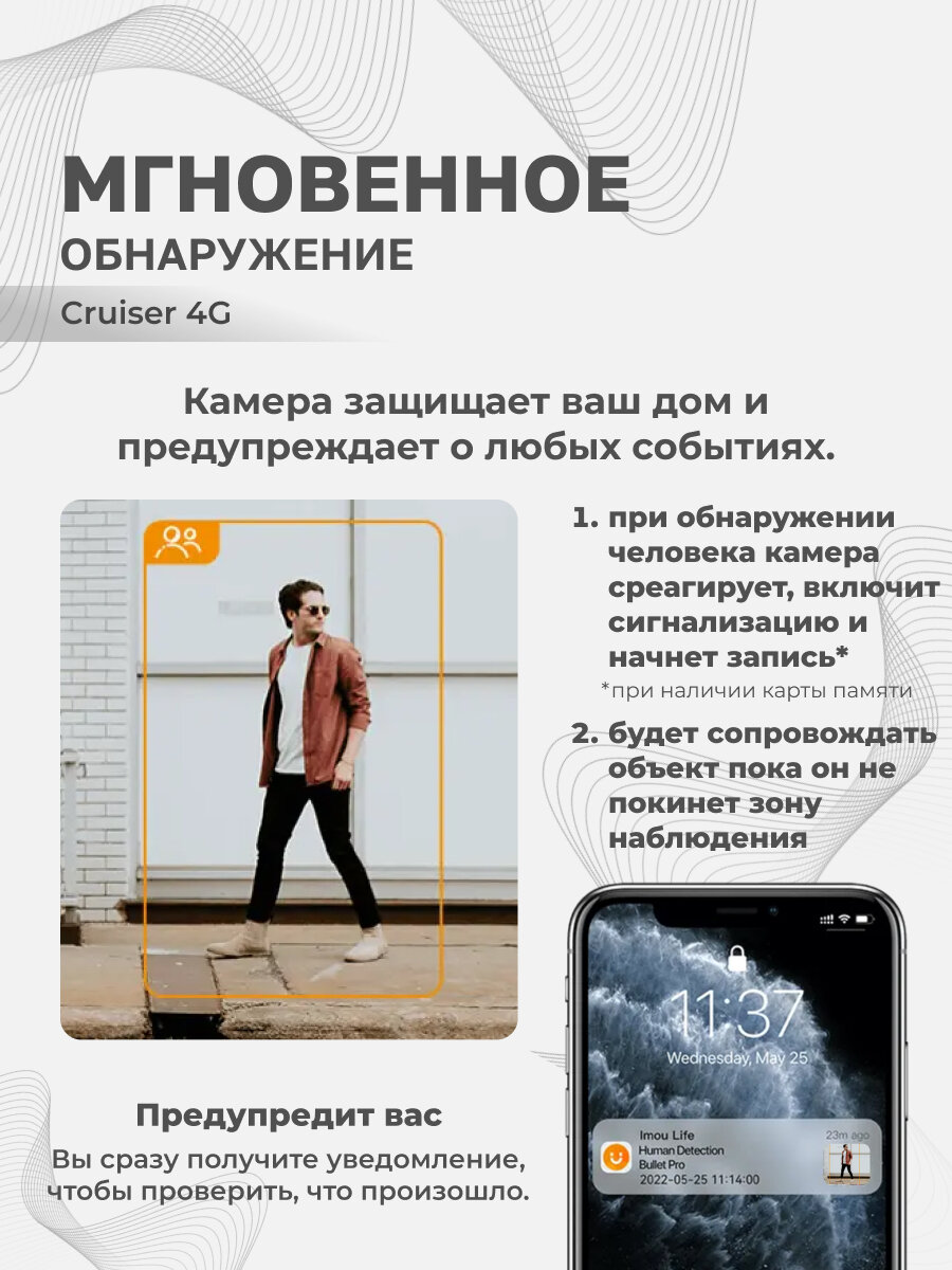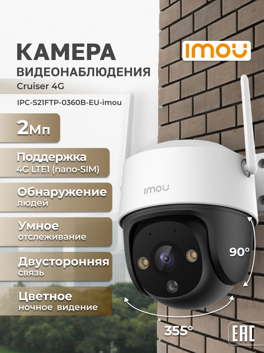 Камера наблюдения IMOU Cruiser 4G IPC-S21FTP-0360B-EU-imou - это надежное и функциональное решение для видеонаблюдения, которое обеспечит вам спокойствие и уверенность в безопасности вашего дома или бизнеса. Cruiser 4G поддерживает подключение по 4G LTE1, поэтому камера будет работать в местах, где Wi-Fi сигнал недоступен.