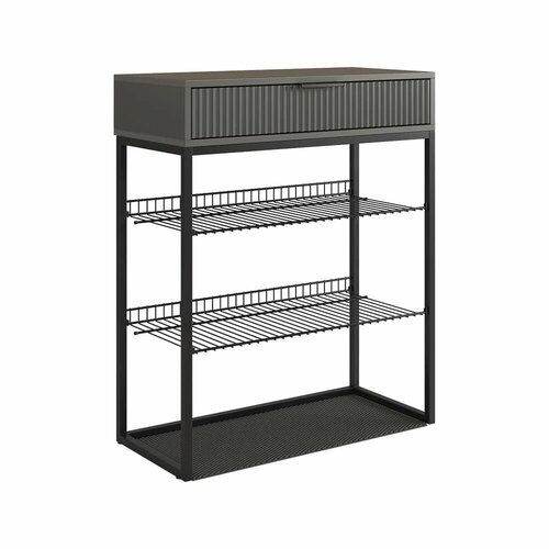 Обувница Вельвет: идеальное дополнение для современной прихожей. Описание: Обувница Вельвет прекрасно сочетает в себе стиль и функциональность. Её дизайн в стиле лофт идеально подходит для современных интерьеров. Выдвижной ящик с шариковыми направляющими обеспечивает бесшумное и плавное открывание, предоставляя удобный доступ к вашим аксессуарам и мелочам. Регулируемые опоры и специальный коврик обеспечивают дополнительный комфорт и защиту. Характеристики: Корпус: комбинация ЛДСП и металла. Фасад: ЛДСП. Направляющие: шариковые. Вместимость: до 9 пар обуви. Ширина: 750 мм. Глубина: 334 мм. Высота: 905 мм. Высокое качество и стильный дизайн – выбирайте обувницу Вельвет. Тип обувницы: стойка. Цвет каркаса: черный. Цвет полок/фасада: графит. Материал полок/фасада: ЛДСП. Материал каркаса: металл. Количество полок: 2 шт. Количество ящиков: 1 шт. Наличие колес: нет. Вместимость пар обуви: 12. Ширина: 750 мм. Высота: 905 мм. Глубина: 334 мм. Габариты без упаковки: 750х334х905 мм. Покрытие фасадов: матовое. Закрытая: нет. Зеркало: нет. С сиденьем: нет. Вес нетто: 19 кг.
