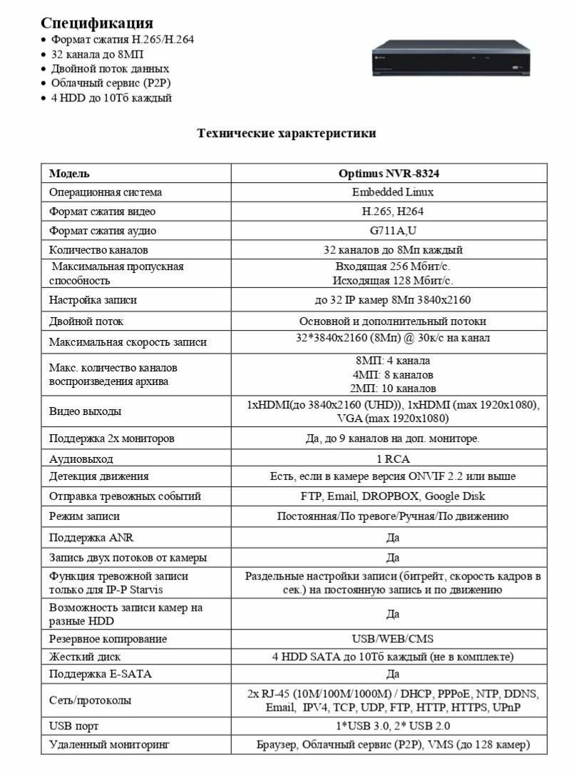 IP-видеорегистратор Optimus NVR-8324: сравнение цен, характеристики, фото, актуальное наличие и цены.