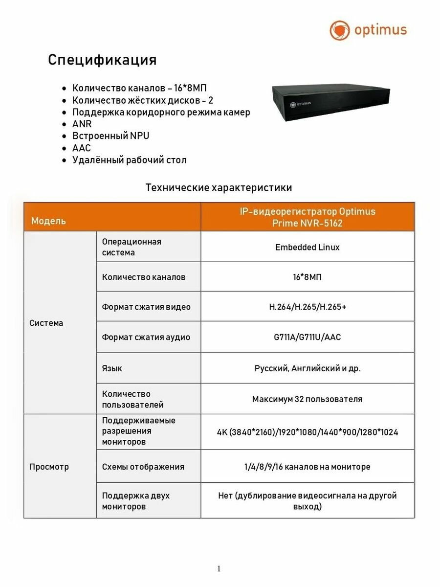 IP-видеорегистратор Optimus Prime NVR-5162: сравнение цен, характеристики, фото, актуальное наличие и цены.