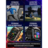Часы имеют грубый корпус, базель часов прочный, на оригинальных винтах с закаленным стеклом, это в сочетании с гипоаллергенным износостойким силиконовым ремешком придают смарт часам особый вид, располагающий к активному образу жизни.