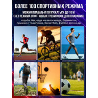 - 100 предустановленных спортивных режимов активности (ходьба, бег, велоспорт, скалолазание, йога, баскетбол, скакалка, эллиптические упражнения и другие)