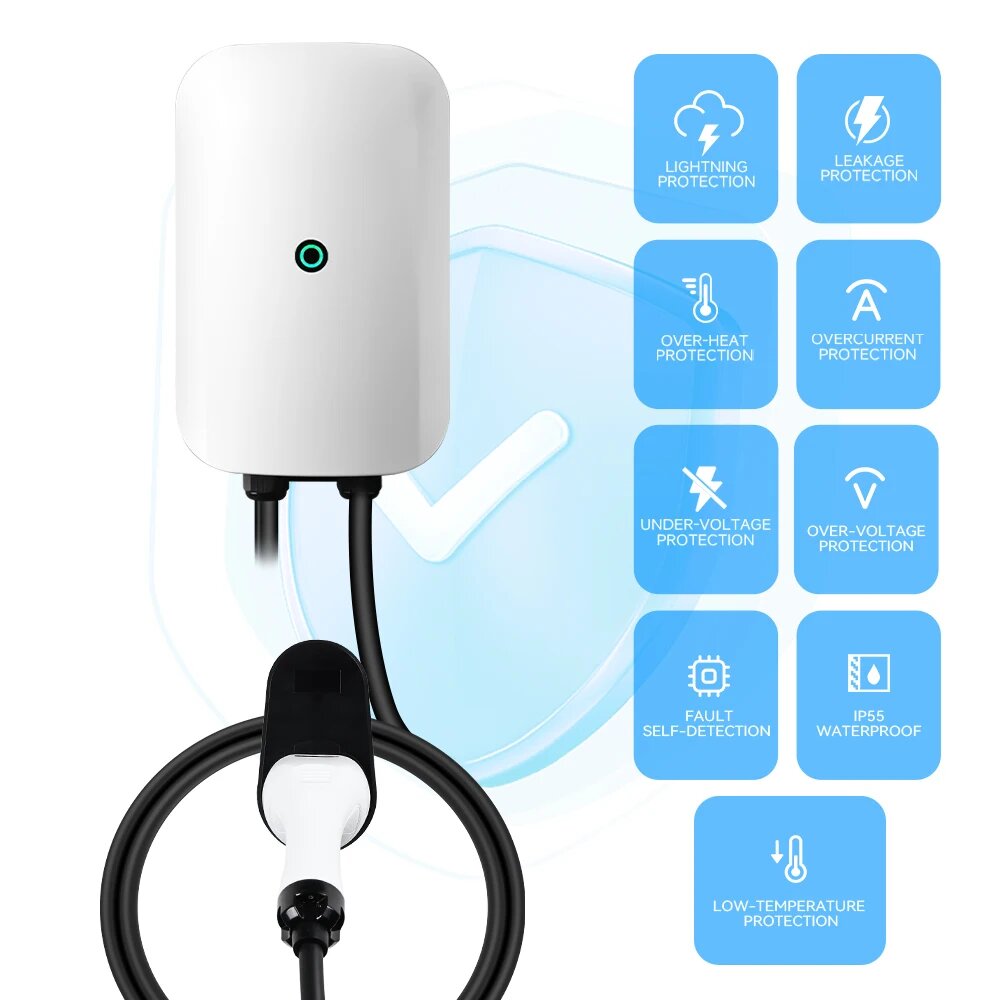 IPENGEN Зарядная станция для электромобилей Type1 Type2 GBT 32A 1-фазная зарядная станция для электромобилей SAE J1772 Зарядное устройство для электромобилей EVSE Wallbox Кабель 5 м, GBT 32A 7KW