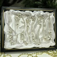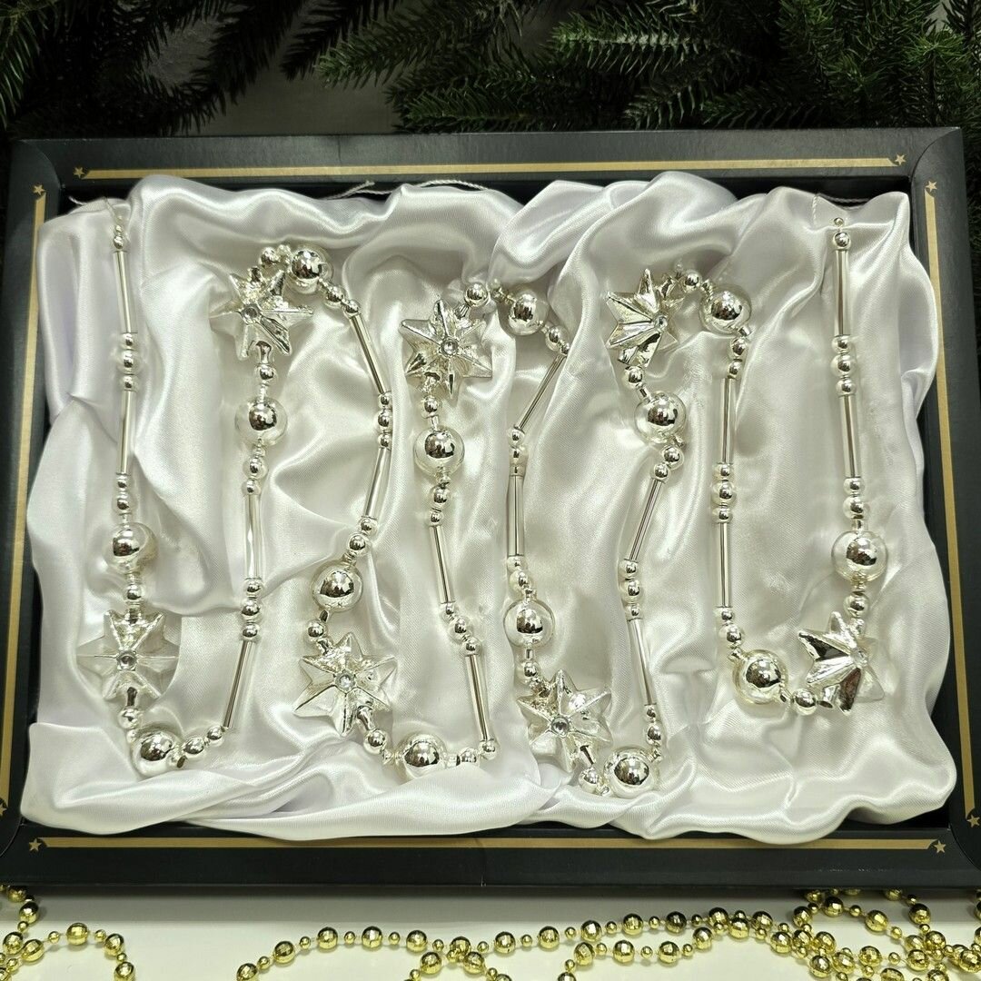 Бусы выполнены из стекла, что придает им особую изысканность и блеск. Серебристый цвет бус создает ощущение морозного зимнего вечера, а их длина в 170-180 см позволяет украсить даже большую елку.