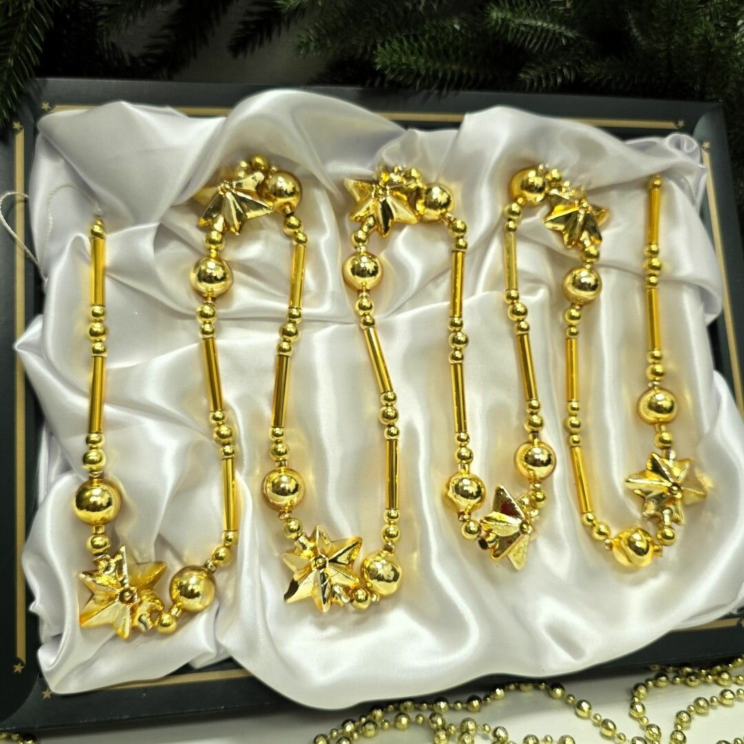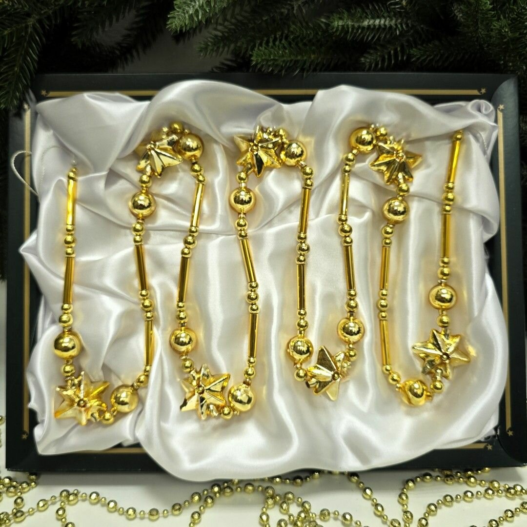 Бусы выполнены из стекла, что придает им особую изысканность и блеск. Золотистый цвет бус создает атмосферу праздника и волшебства, а также добавляет уют в ваш дом.