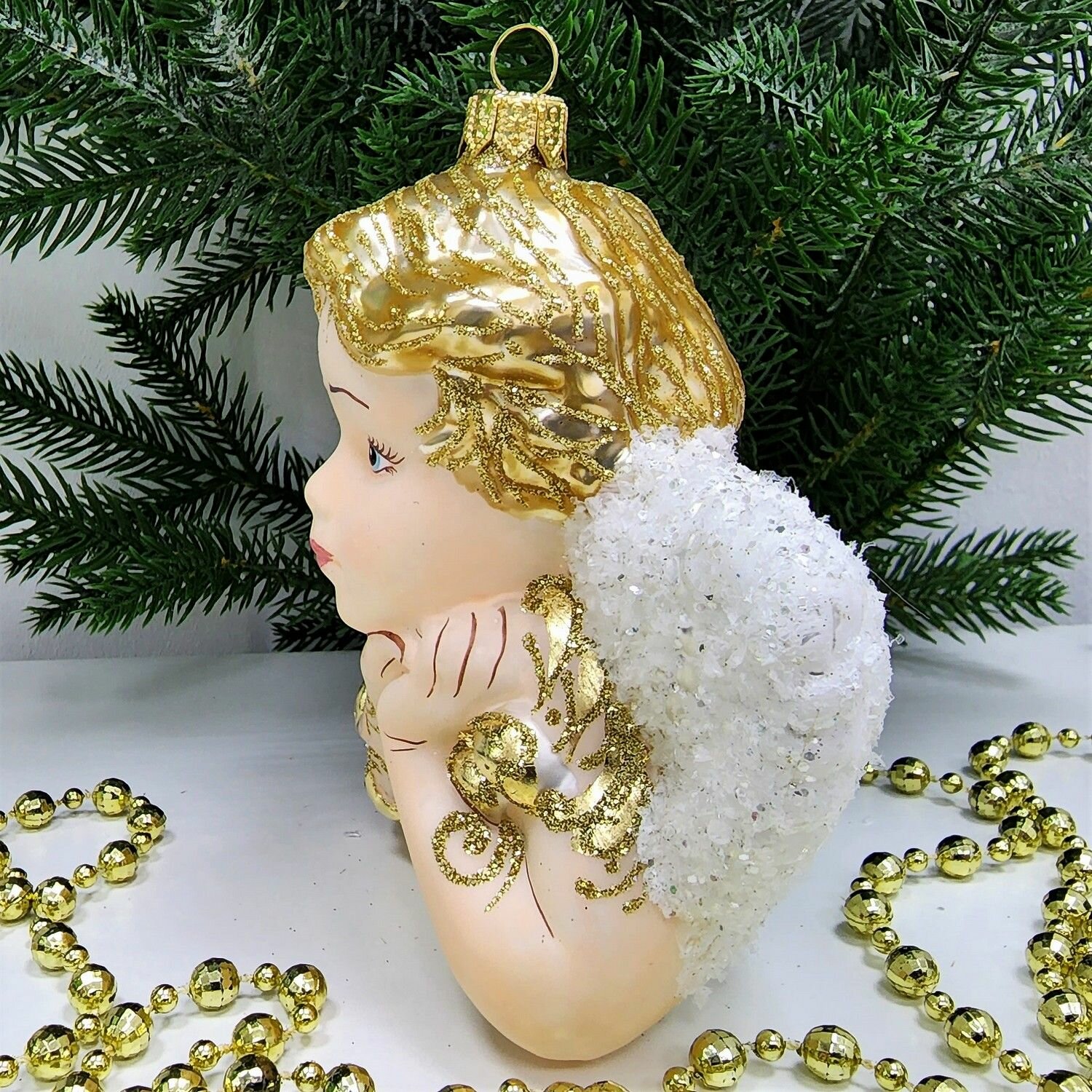 Игрушка изображает ангела, символизирующего защиту и благополучие. Она станет значимым акцентом на вашей новогодней ёлке и создаст неповторимую атмосферу уюта и радости.