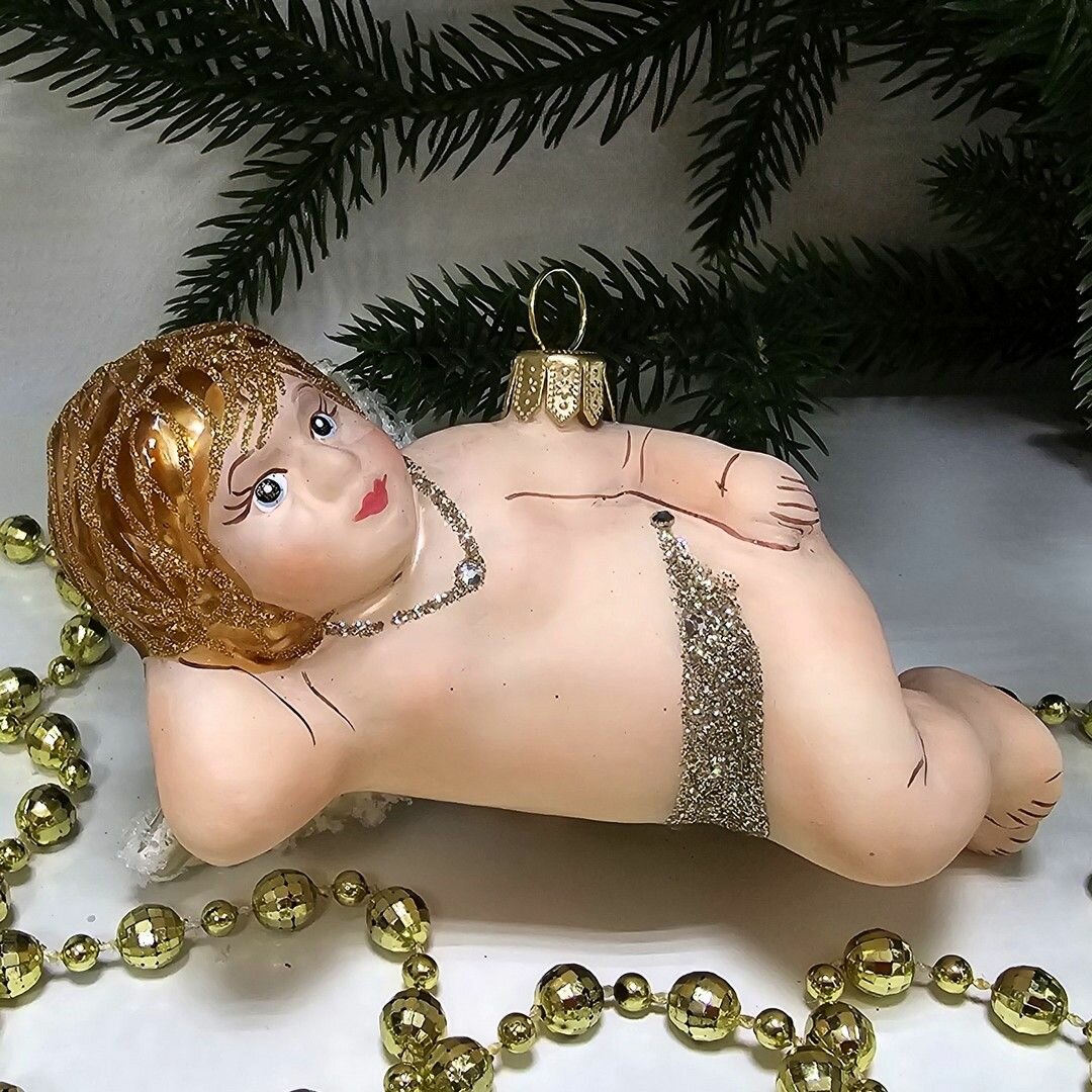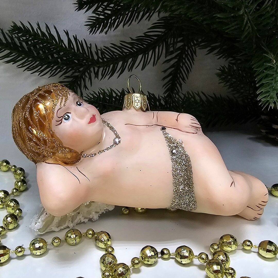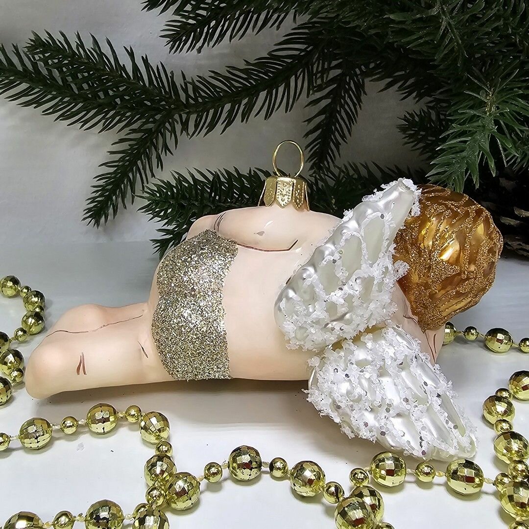 Стеклянная ёлочная игрушка "Ангел лежит" от Irena-Co – это уникальное и изысканное украшение для вашей новогодней елки.