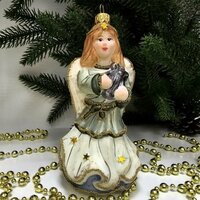 Игрушка выполнена в виде ангела с арфой и имеет размеры 15x7,5x7,5 см, что позволяет ей гармонично вписаться в любой праздничный декор. Ангел с арфой символизирует мир и радость, что соответствует духу Нового Года.