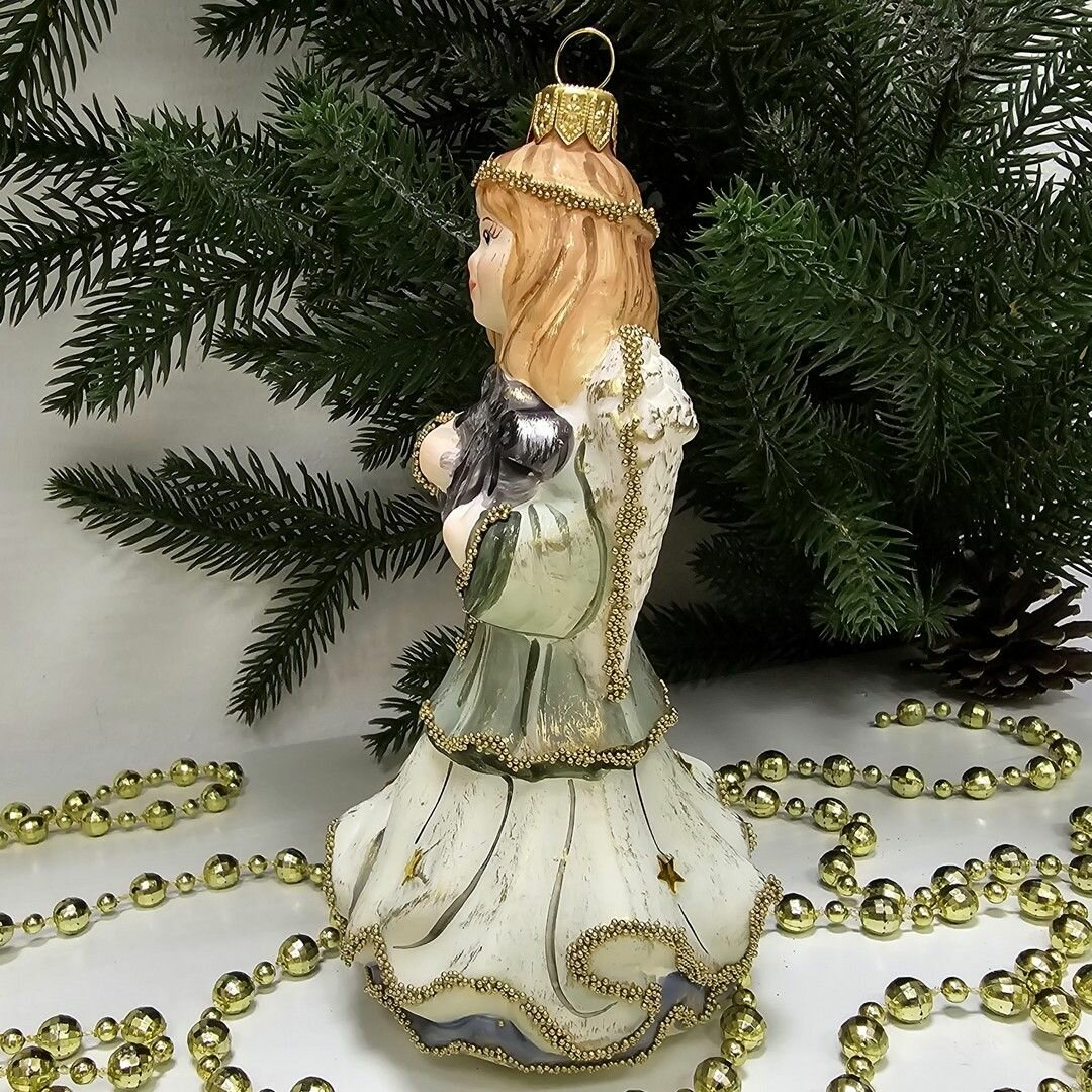 Стеклянная ёлочная игрушка Irena-Co Ангел с арфой винтаж станет отличным подарком для близких и друзей, который напомнит о праздничных моментах и создаст атмосферу уюта и радости.