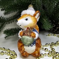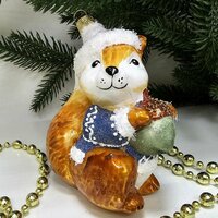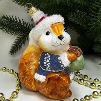 Игрушка выполнена в виде белочки, которая держит в лапках орех. Ручная роспись придает игрушке неповторимый характер и делает ее изысканным элементом декора. Белочка выполнена из стекла, что обеспечивает легкость и блеск игрушки.
