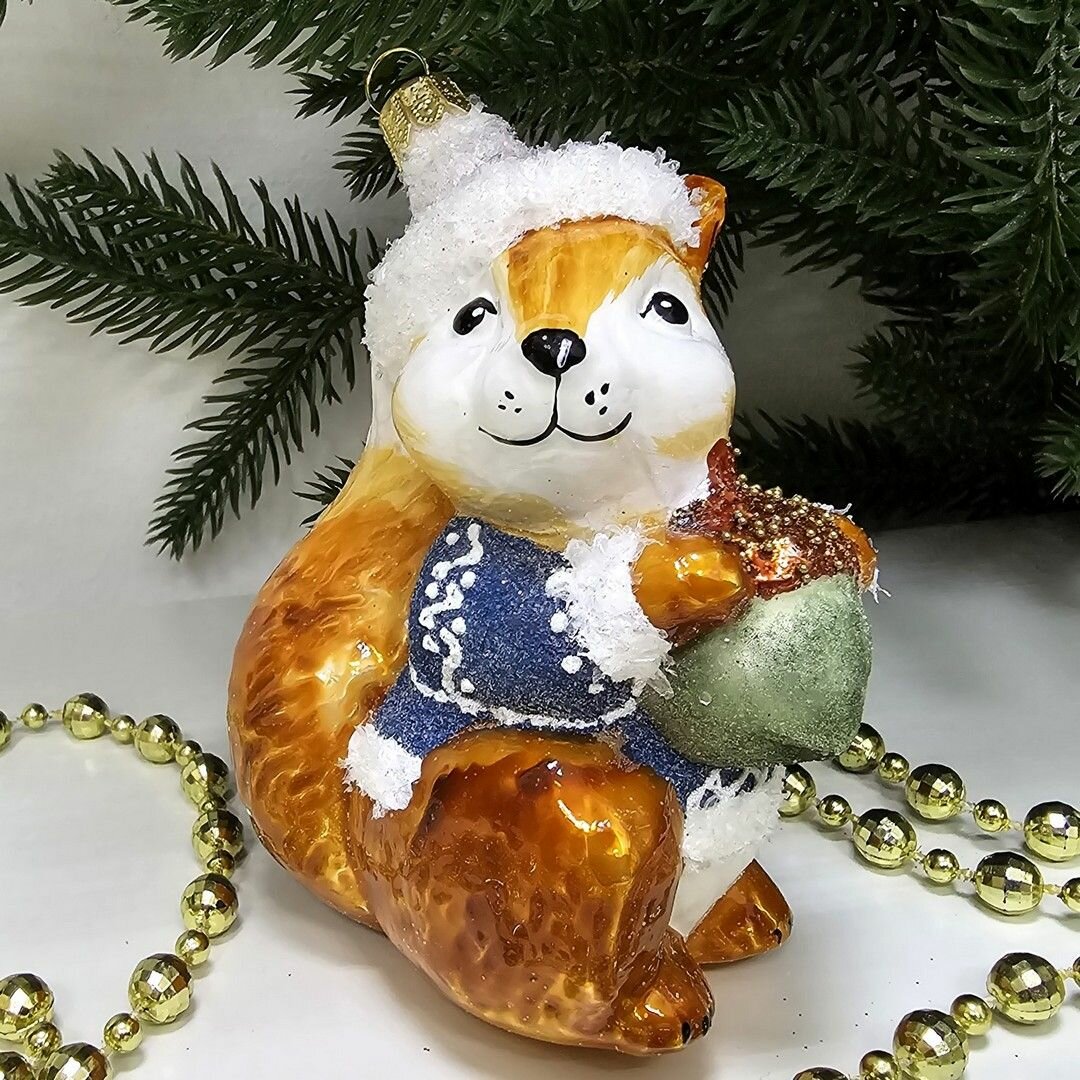 Стеклянная елочная игрушка Irena-Co "Белочка с орехом" - это уникальное украшение, которое станет прекрасным дополнением к вашей новогодней елке.