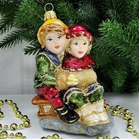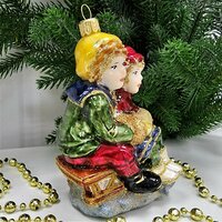 В комплекте идет одна стеклянная ёлочная игрушка "Дети на санях бордо".