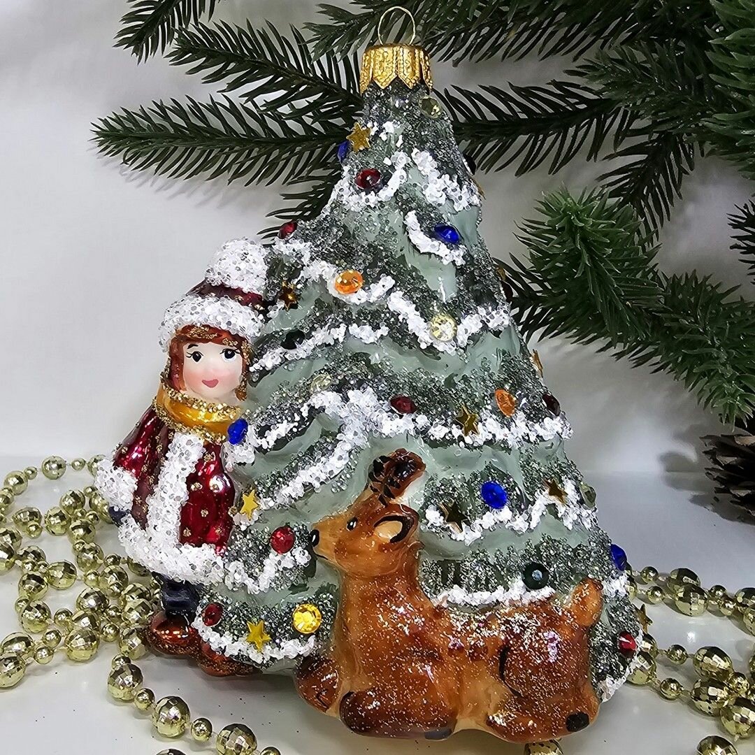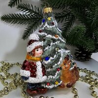 Купить Irena-Co елочная игрушка, стекло Девочка у ёлочки (12,5х10,5х7см) с доставкой по всей России.