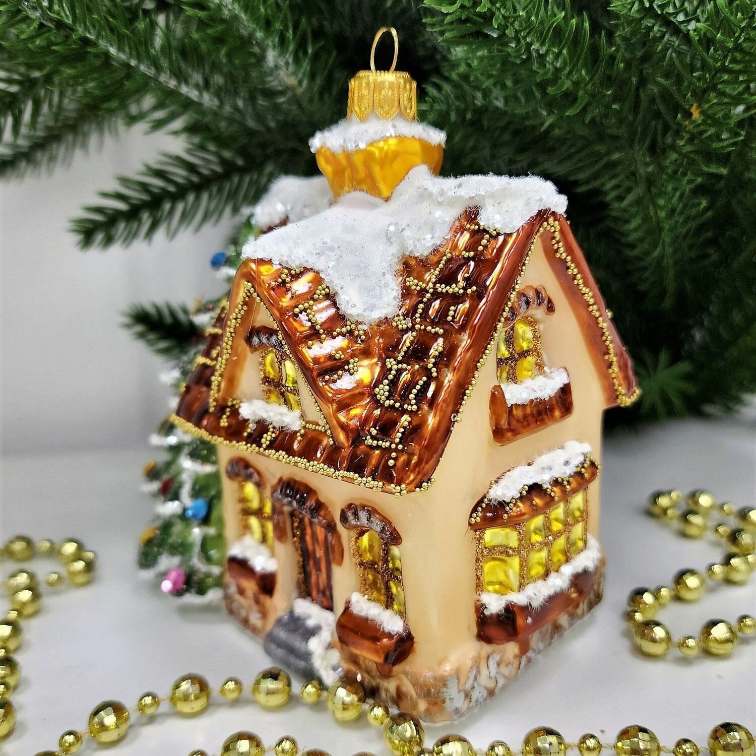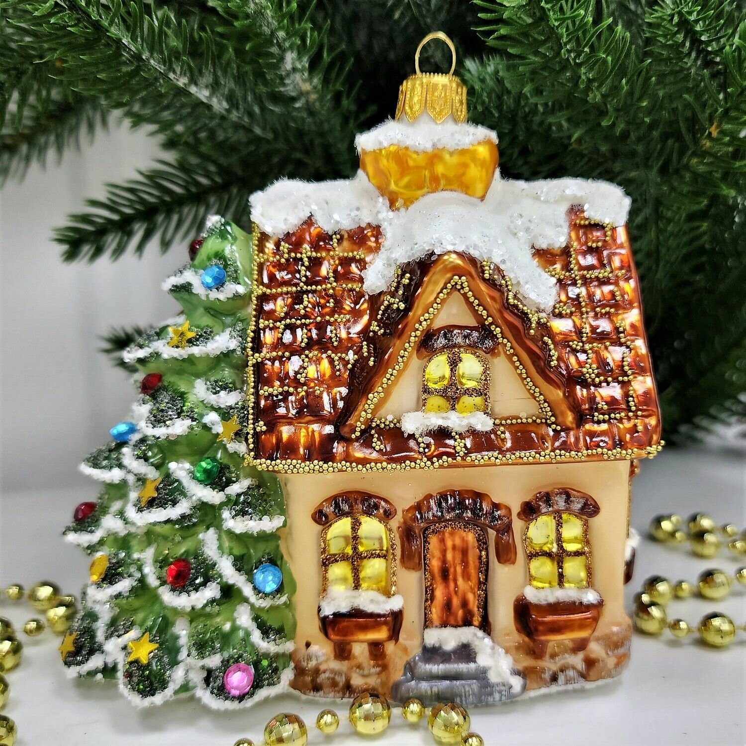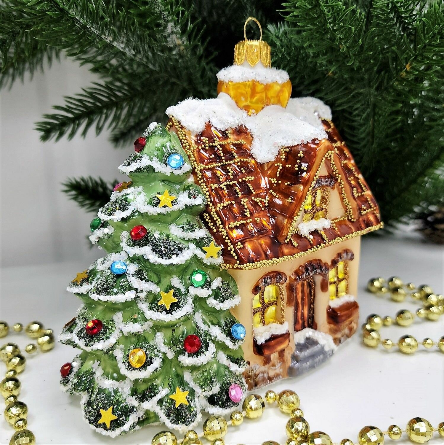 Стеклянные ёлочные игрушки Irena-Co Домик с елкой отлично подойдут как для домашнего декора, так и для украшения офисов или общественных пространств. Они могут стать прекрасным подарком для родных и близких, особенно для тех, кто ценит авторские работы и ручной труд.