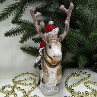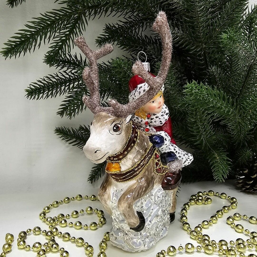 В комплекте идет одна стеклянная ёлочная игрушка Герда на олене.
