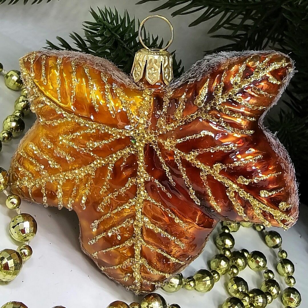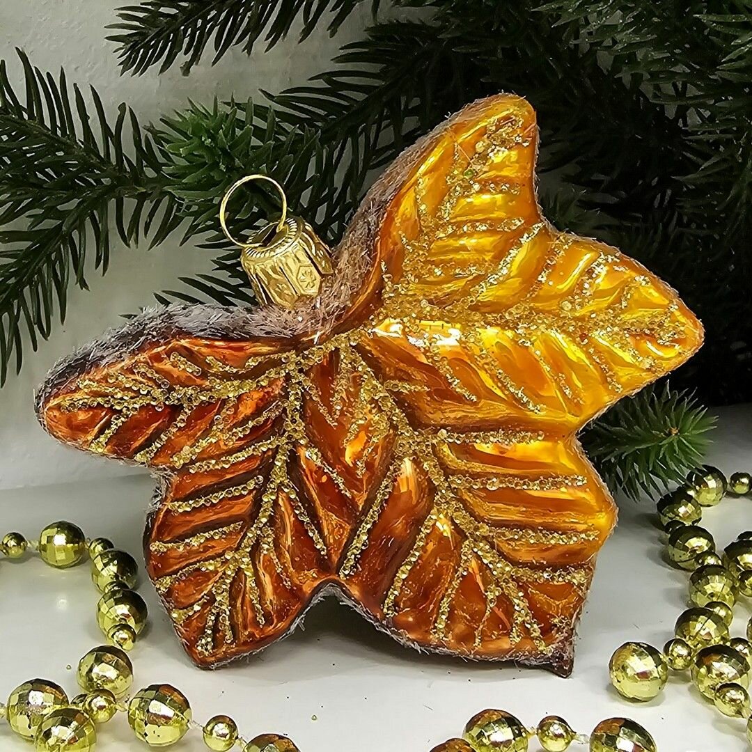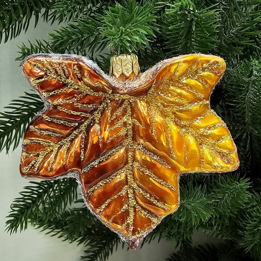 В комплекте идет одна стеклянная ёлочная игрушка Кленовый листок.