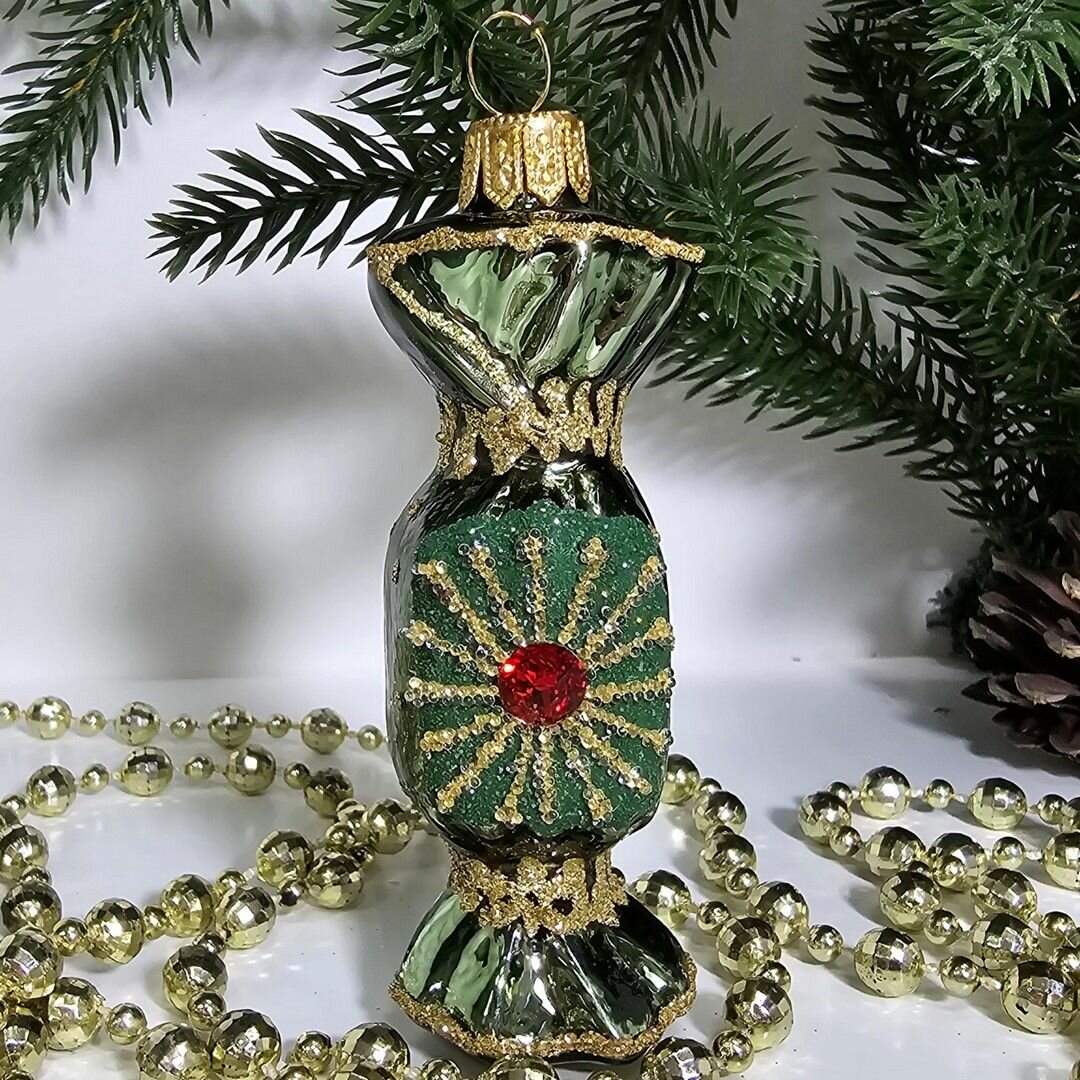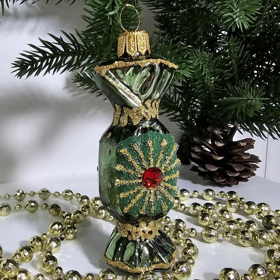 Создайте волшебную атмосферу новогодних праздников с помощью стеклянной елочной игрушки от Irena-Co в форме конфеты. Эта игрушка выполнена вручную и украшена авторской росписью, что придает ей уникальность и делает каждую деталь неповторимой. Размеры игрушки — 9х3х3 см, что позволяет ей занять достойное место среди других украшений на вашей елке.